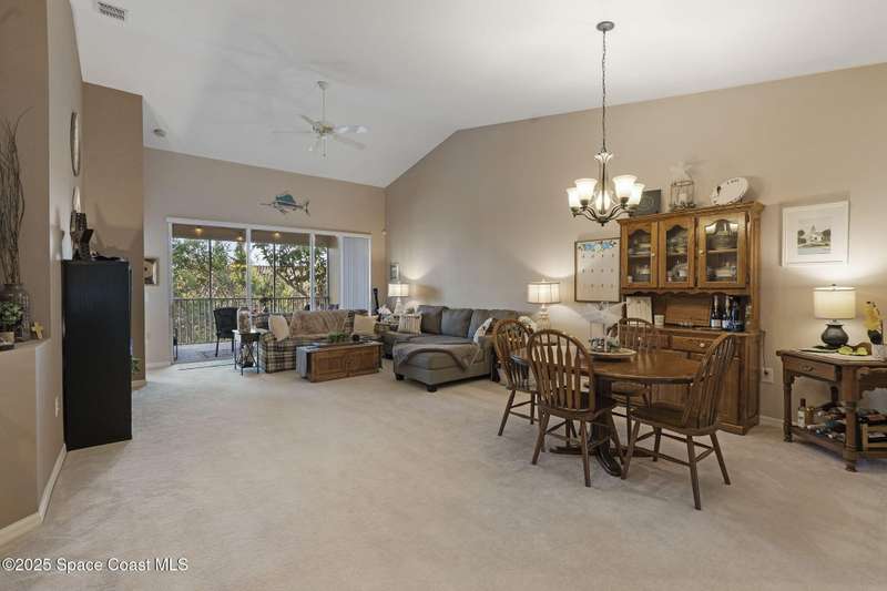 Step inside this spacious 2nd-floor unit and you're greeted with an open-concept floor plan, soaring vaulted ceilings, and an abundance of natural light streaming in through large, well-placed windows and sliders. The interior is move-in ready and waiting for your personal touch.The kitchen boasts clean lines, ample counter space, a breakfast bar, overlooking the dining/living area-perfect for entertaining. Whether you're prepping dinner or enjoying your morning coffee, you'll love the functional layout and visibility into the rest of the home. The primary suite is generously sized, featuring a walk-in closet with a recently updated walk-in shower. Two additional bedrooms offer flexibility-perfect as a guest room, office, or den, with an adjacent full bathroom for added convenience. The screened-in balcony is your private oasis to relax, sip a cool drink, and enjoy warm Florida evenings while overlooking mature landscaping and peaceful common areas. There's also a full-sized laundry room inside the unit. This unit is part of a meticulously maintained condominium complex that features lush landscaping, mature trees, and a calm, community-focused atmosphere. You'll find plenty of parking just steps from your front door, including assigned and guest spots. The low HOA fees cover exterior maintenance, roof, landscaping, building insurance, and access to a well-kept community poolso you can spend less time on upkeep and more time enjoying life. For golfers and tennis lovers, you're only minutes from Suntree Country Club, offering championship-level facilities, events, and social gatherings. Whether you're an avid athlete or simply enjoy a leisurely round on the weekend, living here places you steps from some of the area's best recreation. Living in Suntree means enjoying one of Brevard County's premier planned communities. You're surrounded by beautifully manicured neighborhoods, walking trails, nature preserves, and family-friendly parks like Rotary Park and Jack Mahon Park. The area is safe, quiet, and ideal for walking, biking, or jogging. Need to run errands or looking for a bite to eat? You're just minutes from Viera Blvd, Wickham Rd, and US-1, offering countless options for shopping, dining, and services. Head to The Avenue Viera for a movie night or grab brunch at one of the many local cafes. And let's talk location: you're under 15 minutes to the beach, 10 minutes to I-95, and less than an hour from Orlando International Airport. NASA, SpaceX, and Patrick Space Force Base are all within easy commuting distance, making this an excellent location for both retirees and professionals.
