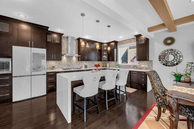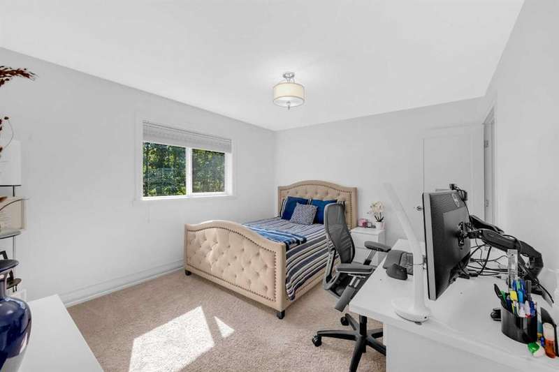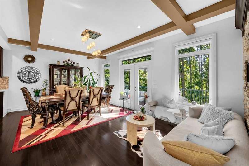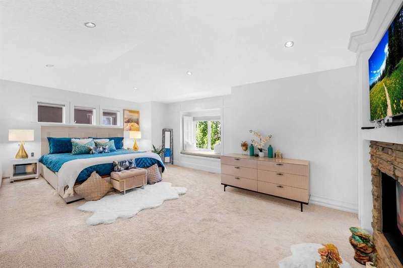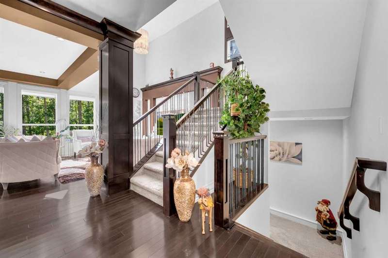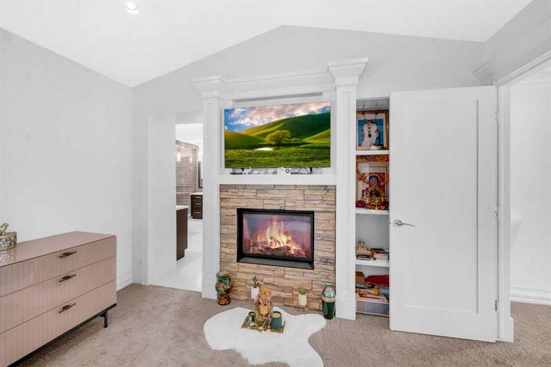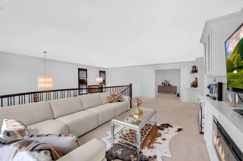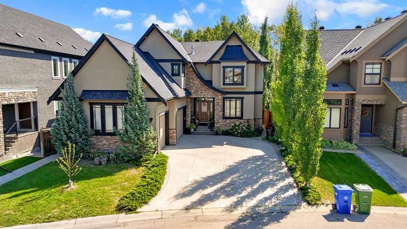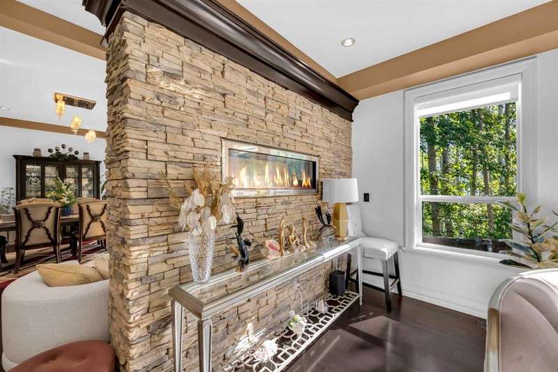 Discover a haven of refined living nestled against a tranquil forest in this former show home, where captivating stone and stucco exterior architecture meets a bespoke wooden trim lined interior that radiates timeless elegance. With over 4900 total square feet throughout this luminous five bedroom, three full bath residence it features an attached triple car garage, two powder rooms, and a main floor defined by soaring 9 foot ceilings, a gracious den, and a majestic 3D gas fireplace. The gourmet kitchen, ensconced beneath a chauffeured ceiling over the dining area offers floor to ceiling cabinetry, built in appliances, a vast pantry, Samsung smart fridge, and colossal island, all crafted for both culinary excellence and effortless entertaining. Upstairs, a sun drenched open-to-below bonus room with an electric fireplace overlooks the living area on the main floor and is accompanied by two bedrooms that share a Jack and Jill style bath with an additional common powder room upstairs. The luxurious master suite serves as an elegant retreat with a cathedral ceiling, pot lights, cozy gas fireplace, and spa-inspired ensuite featuring dual vanities, a two-person air tub, an opulent steam shower, and his and hers walk in closets creating a truly one of a kind space and atmosphere. The walkout lower level beckons as a radiant entertainment sanctuary, offering ample natural light through oversized windows, a near full kitchen including high end Electrolux appliances and combo oven/microwave, two additional bedrooms, and another versatile space ideal for a den or media lounge. Premium amenities within the home encompass central air conditioning, dual furnaces, water filtration system, abundant pot lighting and much much more. The southeast facing backyard flows seamlessly into a private wooded backdrop, crafting an idyllic extension of your indoor sanctuary and presenting the perfect space for any gathering you could have. Just minutes from top tier schools such as William D. Pratt School and Royal Oak School, the YMCA, shopping centers, and grocery stores, this residence delivers an extraordinary fusion of elevated design, sophistication, and effortlessly accessible community luxury that can only be gained by making this home yours.