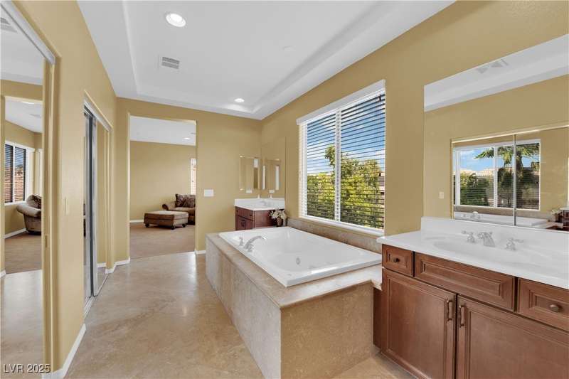 Huge price reduction!!!! Welcome home to this spacious 4 bed, 3 bath home in gated Centennial Hills community with over 3,500 sq ft of living space! Features include a large primary suite with sitting area, downstairs bedroom & den, formal living/dining, family room with fireplace, and chef’s kitchen with granite counters, island, double ovens, and butler’s pantry. Enjoy the private backyard oasis with pool, covered patio, and mountain views. 3-car garage, tile & carpet flooring, and downstairs laundry. Convenient to schools, parks & shopping!