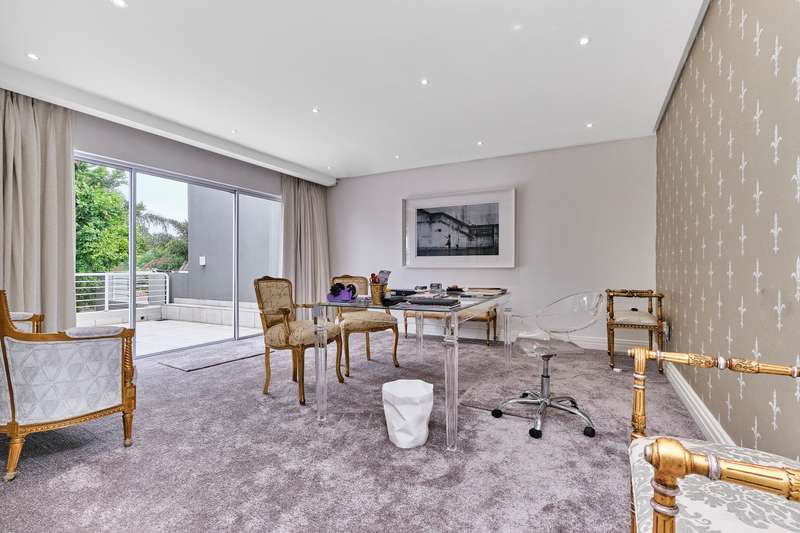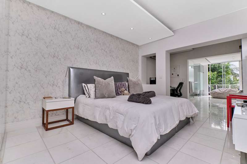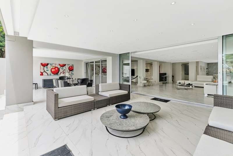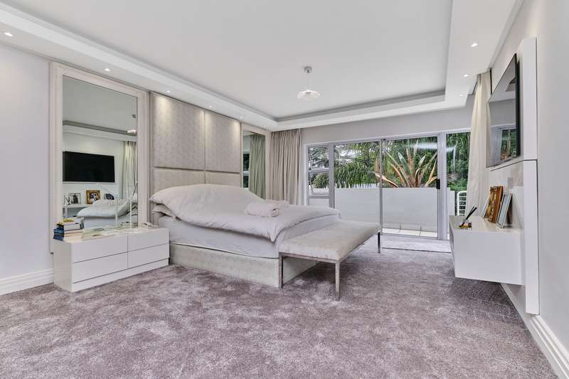 Seller inviting offers In an ultra secure and Exclusive Estate set on an impressive 1000m2 and approx 1100m2 under roof, this cluster home is distinctively unique in every way. A home where privilege and ultra modern lifestyle converge ! Superior architectural design boasts the interplay of natural light and pure artistry . The entrance hall double volume is a prelude to an awe inspiring open layout that caters to every facet of modern lifestyle choices. Lighting features are on another level . Top notch entertainment spaces include well appointed bar server and inviting breakfast room, generous dining area and elegant lounge and superlative TV chill room . Refreshing soft white tones and modern textures throughout onto the lavish undercover patio and inviting summer pool. The superbly elegant eat in kitchen is fully equipped wit SMEG gas cooker and ovens with a top of the range walk in cold room. There is a separate scullery and laundry room. Upstairs the generous landing leads to the Master suite, an oasis of comfort with gorgeous ensuite jacuzzi tub & luxury dressing areas with the added convenience of a private study and sunny terrace overlooking the garden. Four additional beautifully designed bedrooms with ensuite bathrooms to delight. There is an ultra spacious home office versatile as a gym or seperate flatlet. Triple staff accommodation with shower bathrooms and kitchenette 4 auto garages This prestigious residence is close to all of Morningside’s popular amenities, schools and medical facilities. Be absolutely moved! Call us today to secure your dream house.