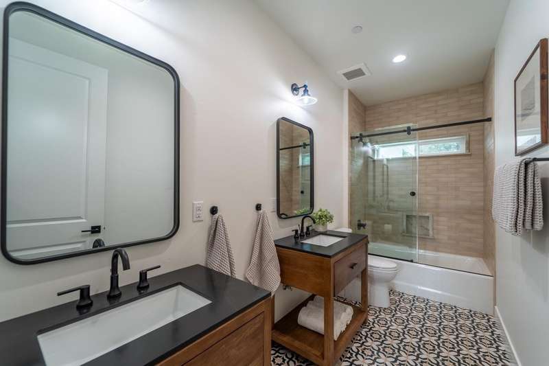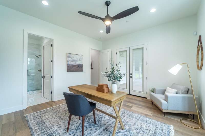Embark on a journey where innovation effortlessly intertwines timeless elegance, giving rise to spaces that inspire and enhance everyday living. Nestled within the exclusive gated River Oaks Estates, a newly crafted custom residence exceeds expectations. Marvel of engineering and design, spanning two levels, adorned with expansive 1304 sq ft wrap-around porch, the home harmoniously blends with its natural exterior surroundings while standing out as an interior showcase of contemporary sophistication. Lower floor unfolds as open-concept, featuring cutting-edge kitchen, Fisher & Paykel, ZLINE, and Cafe Advantium SmartHome appliances, finishes exuding character, an effortless and clean ambiance, while detail-driven plumbing fixtures accentuate understated luxury. Downstairs en suite, doubles as office with private entrance, seamlessly connects to impressive entertaining areas that extend to exterior. Ascend to the second level, discover the luxurious primary suite, boasting a soaking tub, zero-entry shower, walk-in closet, and captivating bedroom with balcony. Two additional bedrooms, and bathroom flawlessly marry elegance with relaxed comfort. The 722 sq ft preplumbed loft, for future use, adds versatility. This custom estate transcends the definition of a home.