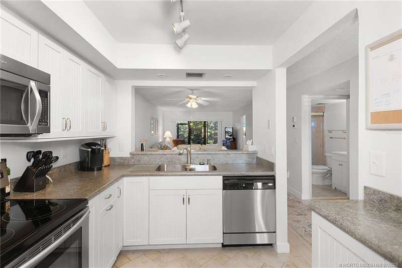 Ocean front, first floor condo offers easy access within steps to the beach. This 2 bedroom 2 bath turnkey gem is ready for you to make it your own beach getaway. Listen to the sounds of the ocean waves on your private patio with garden view. Located next to pool and beach access, this condo is sure to please! The extremely desirable Sanddollar Shores gated community boasts modern amenities with great rental income potential, with only a 30 day minimum. 1 pet allowed any size. Come live the Hutchinson Island life!