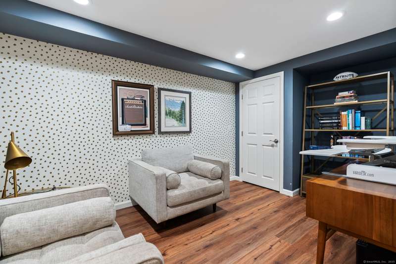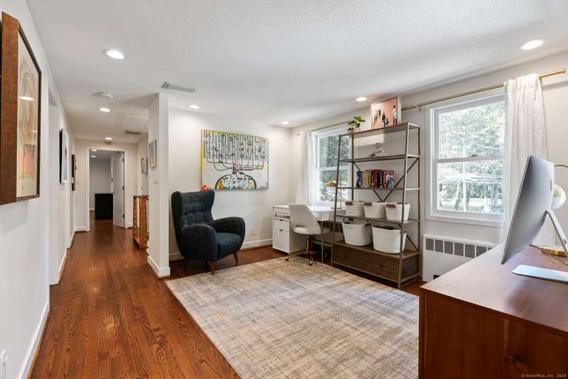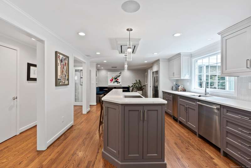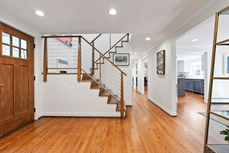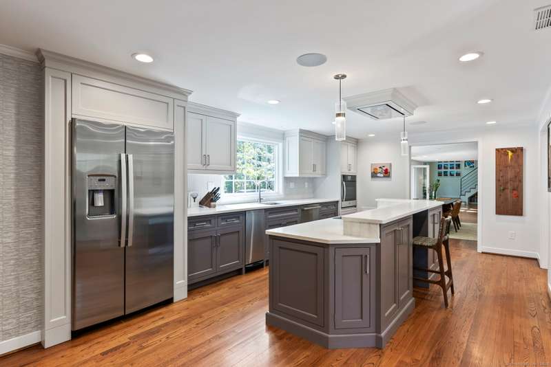 Move right into this spectacular home in the highly desirable west of mountain road neighborhood! Attention to detail around every corner of this sun filled home with gorgeous hardwood floors and updates galore! Brand new kitchen features granite countertops, banquet dining table, top of the line appliances with a separate coffee bar/pantry and direct access to large family room. The main floor also includes dining room, living room and vaulted library with French doors leading out to custom stone patio with plenty of room for outdoor gatherings. Fenced in backyard, outdoor entertainment system, and firepit make it a perfect place for relaxing! Upstairs there are four spacious bedrooms as well as an additional room that can be used as an office or a fifth bedroom. The expansive primary suite features a large bathroom with steam shower and whirlpool soaking tub as well as ample closets. The other bedrooms share two full bathrooms. Additionally, there is a second-floor study space perfec