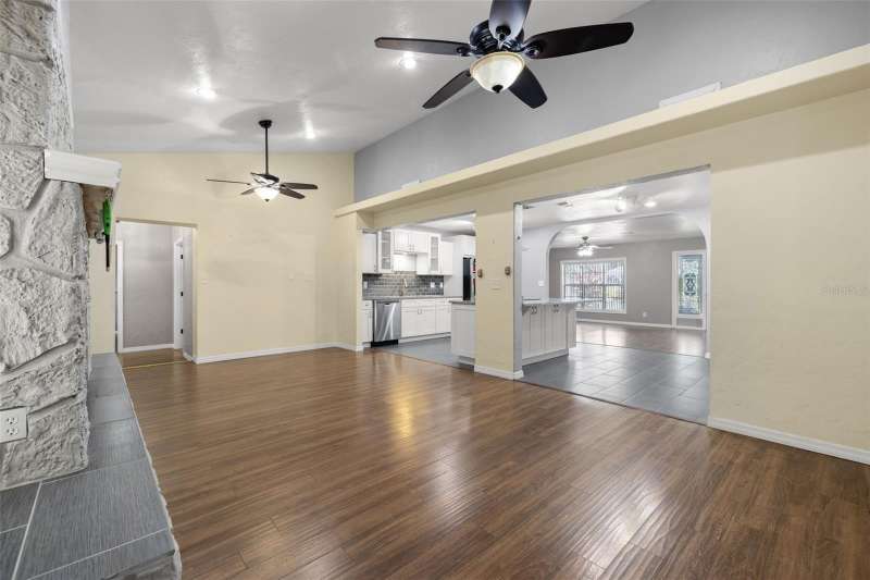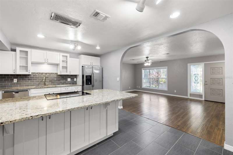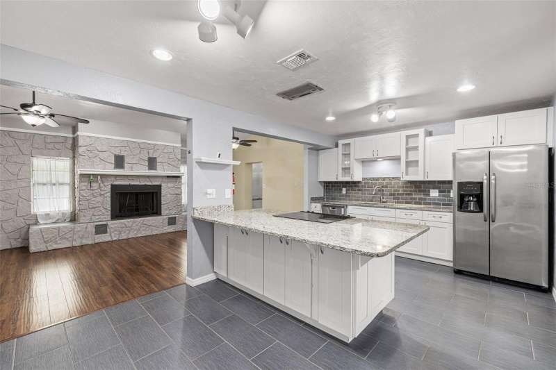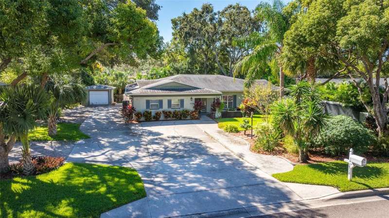 Situated on an oversized, lushly landscaped lot mere blocks from Downtown Palm Harbor, this one-of-a-kind home includes both a generous 4-bedroom 2-bathroom main home and a 1-bedroom 1-bathroom mother-in-law suite ideal for multigenerational living or rental income potential. With 2,828 sq. ft. heated (3,248 gross) this is a home that offers exceptional versatility and true Florida living at its finest. A stone walkway winds through lush, mature landscaping featuring Oaks, Palms, Camphor, avocado, flowering Bird of Paradise, Hibiscus, Plumbago, and vibrant Crape Myrtles, welcoming you to a home well maintained throughout the years. Step inside the main home to find a spacious open floorplan with laminate and tile flooring throughout, completely carpet-free for easy maintenance. LED lighting and ceiling fans illuminate every gathering space and bedroom, while a wood-burning fireplace, vented with fans for efficient heat circulation, sets the tone for cozy evenings. The kitchen is a showstopper with granite countertops, stainless steel appliances, a walk-in pantry, soft-close cabinetry, and a large island housing the stovetop and additional storage. The massive owner’s suite has its own private exit to the sunroom, a large walk-in closet and an ensuite bathroom featuring a walk-in shower. The generously sized bedrooms offer comfort for all. A full laundry room with sink and abundant storage adds everyday practicality. The private in-law suite includes its own entrance, kitchen, bathroom, multiple closets, and stackable laundry hook-up, allowing guests or residents complete independence. An enclosed Florida room equipped with in-wall A/C and heat provides year-round flexibility as an additional living or entertainment space. Outside, the fully fenced backyard feels like a private retreat with a five-zone irrigation system ensuring the landscaping stays lush year-round. A detached workshop with electric and automatic door opener and a level pad with a 30 AMP RV hookup ensure there is space for all your hobbies and toys. With a 2014 roof and 2017 HVAC for peace of mind, this property pairs charm with longevity. With no HOA and no flood insurance required, you’re able to have more flexibility with your home. Top-rated schools are just moments away, and from the mailbox, you can catch views of Honeymoon Island. The local YMCA and Pop Stansell Park, offering a kayak launch, playground, and covered band shell for community events, are right down the road. Downtown Palm Harbor has more food, brew, and entertainment per square foot than any place in Pinellas County. Golfers will love being just 10 minutes from the world-renowned Copperhead Course at Innisbrook, home of the PGA TOUR’s annual Valspar Championship. This is more than a home, it is a lifestyle in one of Palm Harbor’s most coveted locations.