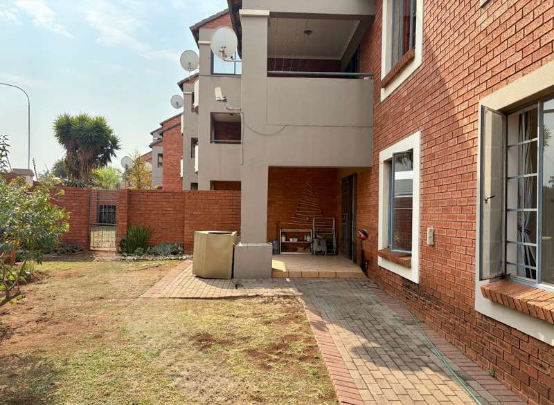 Ground Floor Corner Apartment with Private Garden. Discover modern convenience and secure living in this sought-after ground floor corner apartment situated in the well-maintained El De Vino complex. Perfectly positioned in Die Hoewes, this home is just minutes from the Centurion Gautrain Station, major routes, shopping centres, and top schools. Property Features: Spacious 3 bedrooms with built-in cupboards 2 modern bathrooms, including a stylish en-suite Light-filled open-plan kitchen and lounge designed for easy living Inviting patio leading onto your own landscaped, private garden – perfect for entertaining or relaxing Secure double garage with direct access As a corner unit, you will enjoy extra privacy, added natural light, and a generously sized wrap-around garden – a rare find in complex living. The complex offers excellent security and a tranquil lifestyle, making it ideal for families, professionals, or investors looking for prime location and great rental demand. Location Highlights: Walking distance to Centurion Gautrain Station Close to Centurion Mall, Unitas Hospital, and major highways (N1, N14, R21) Safe, quiet neighbourhood with strong community feel This apartment perfectly blends space, security, and convenience – a true lock-up-and-go with the bonus of your own private garden oasis.