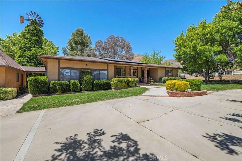This Beautiful Ranch Home is Complete with 3 beds and 3 baths and a Spacious open floor plan that flows nicely. The Game Room/ 4th bedroom is a Bonus for any purpose you might have. The Kitchen is very Open and flows well equipped with double ovens ,built in cook top, trash compactor, custom made fridge ,dishwasher, Island and peninsula. This home has a Formal dining room and formal Living room , as well as Primary beds that are equipped as on suites. Some of the features include Solar panels ,well pump ,and well house, and septic are newly done. Their are 2 ,2 car Garages and multiple Shed's and storage units . The well and new water filtration system, horse corral, chicken coup, new whole house generator ,car pit, built in BBQ, kids play area, horse shoe pit, 4 storage rooms, automatic sprinklers ,Fully fenced and flat usable property. This home has a whole house triple filtration system. So many upgrades you need to see for yourself.