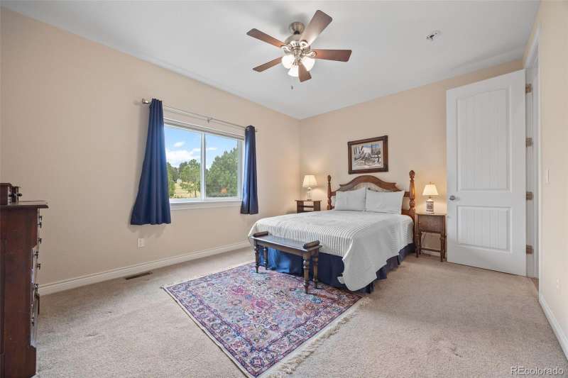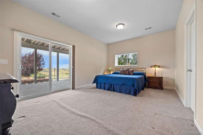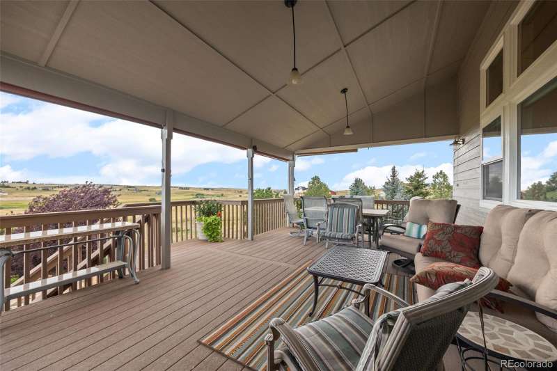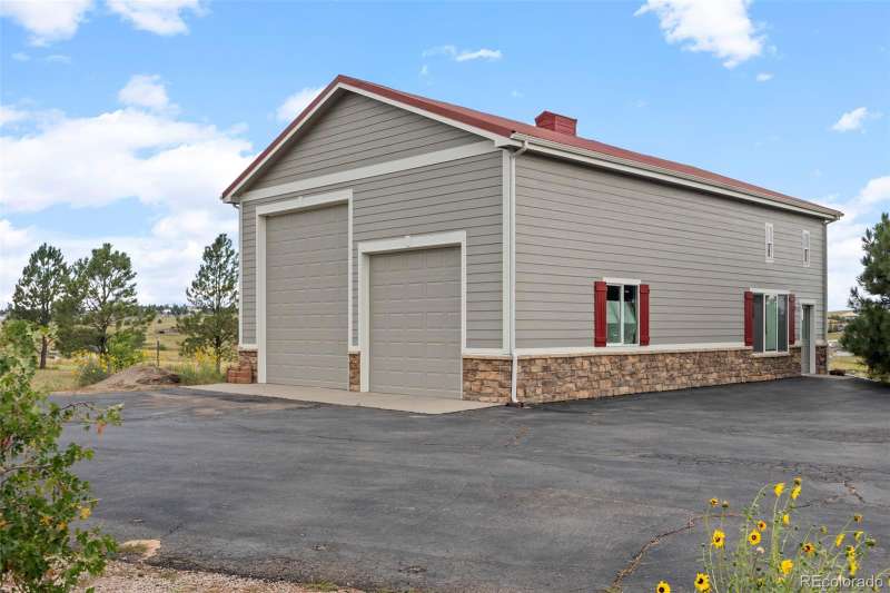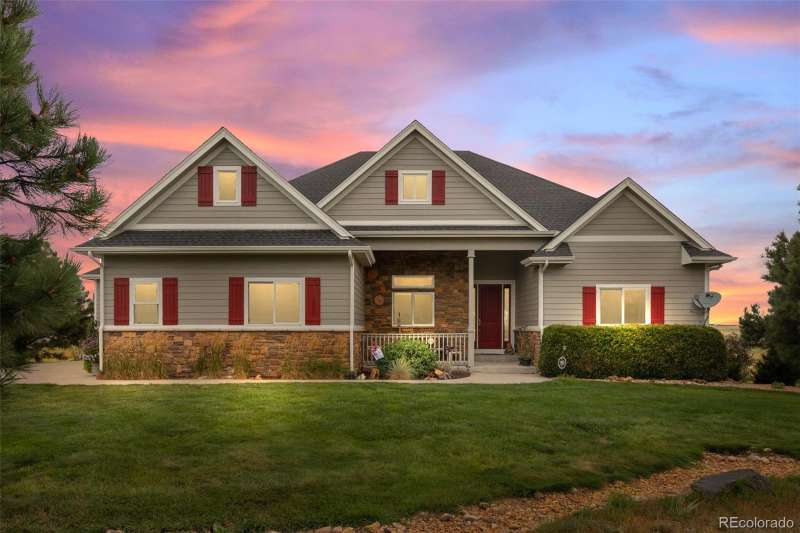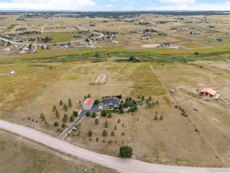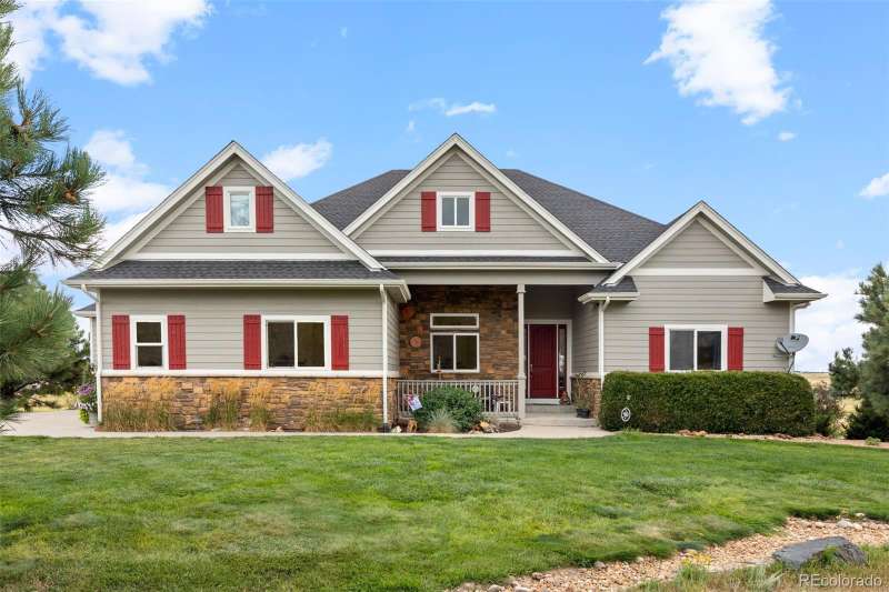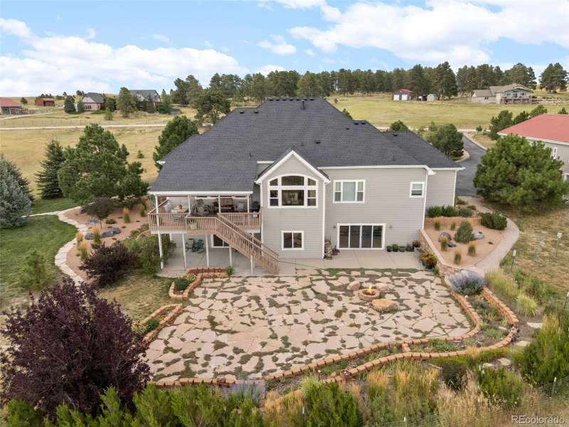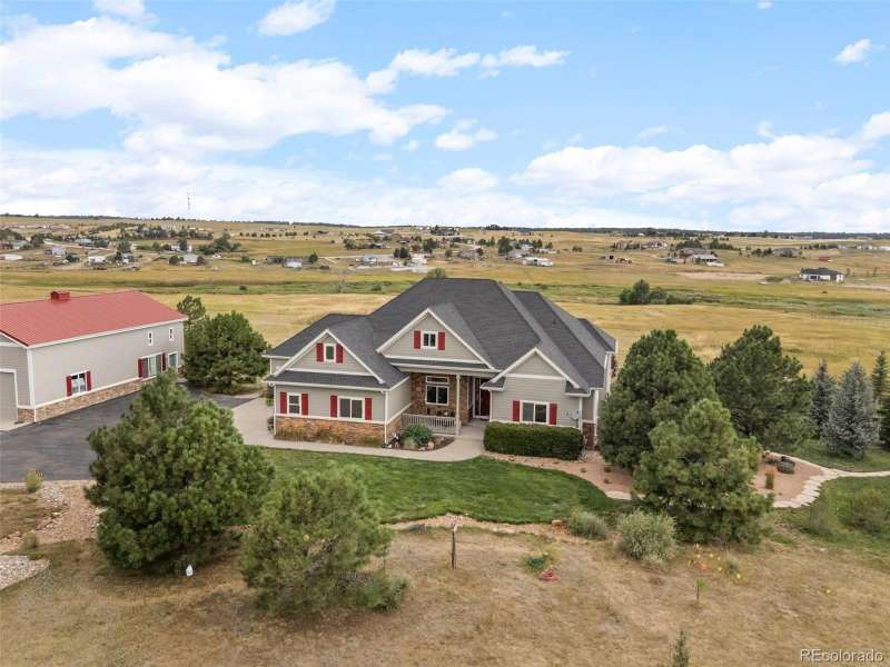 Welcome to your Colorado dream retreat! This sprawling 4,591 sq. ft. ranch-style home on 14.3 acres offers privacy, versatility, and breathtaking views of Pikes Peak-all with no HOA. With 4 bedrooms, 3 bathrooms, and dual primary suites, this home is perfect for multi-generational living or hosting long-term guests. The main floor boasts soaring 14-foot ceilings, a dedicated office with a custom built-in desk with floor-to-ceiling bookcases, and a warm, inviting kitchen featuring granite countertops, stainless steel appliances, pantry, and custom alder cabinetry. The main-floor primary suite offers views galore and a retreat to the jetted tub or large walk-in shower. Additional bedroom and adjoining bathroom on the main floor. The living room showcases a beautiful custom-crafted entertainment center, while the walk-out basement (10-foot ceilings) includes a wet bar with full size refrigerator and huge space for recreation, pre-wired for surround sound! Relax outdoors on the flagstone patio adorned with walkable thyme and a built-in firepit, enjoy the private pond, or soak up the meticulous landscaping, blooming flowers and organic garden. You'll find mature Spruce, Ponderosa and Austrian Pines, Blue Spruce creating privacy around the home and lot. For hobbyists and adventurers, a 200-foot shooting range and a 30x48 outbuilding with RV garage (12' & 15' doors) plus an upstairs workshop provide endless possibilities. The asphalt driveway and Maverix fiber optic internet ensure convenience. Easy access to Highway 86. This home is closer to the town of Elizabeth than it is to Kiowa. Whether you're seeking space for everyone, room for projects, or simply a peaceful setting close to town, this property delivers the perfect balance of comfort, function, and Colorado beauty.
