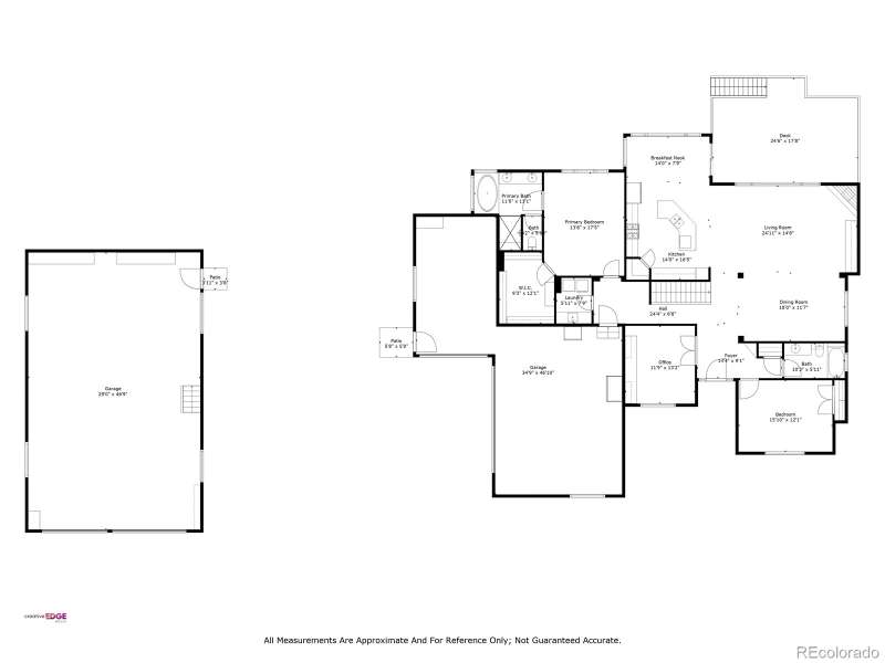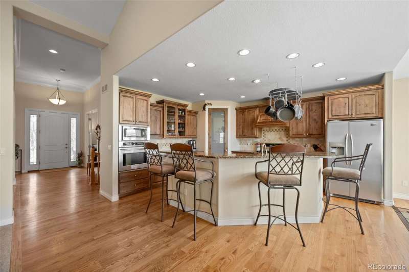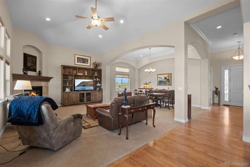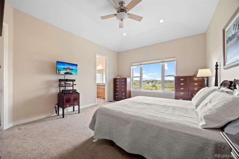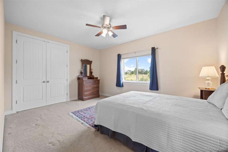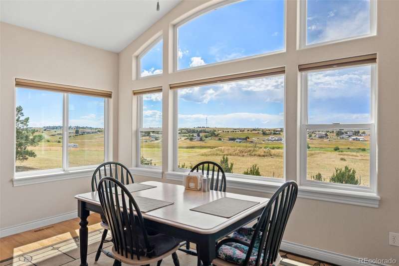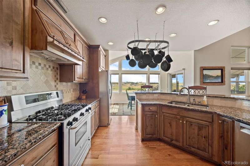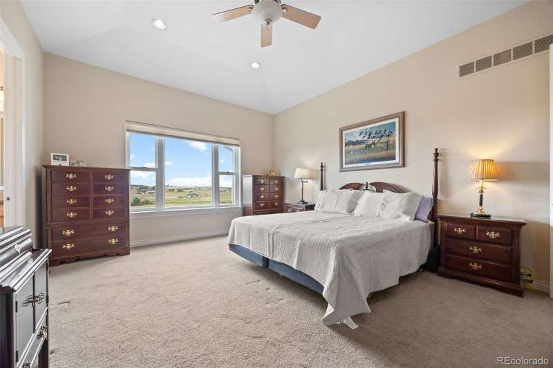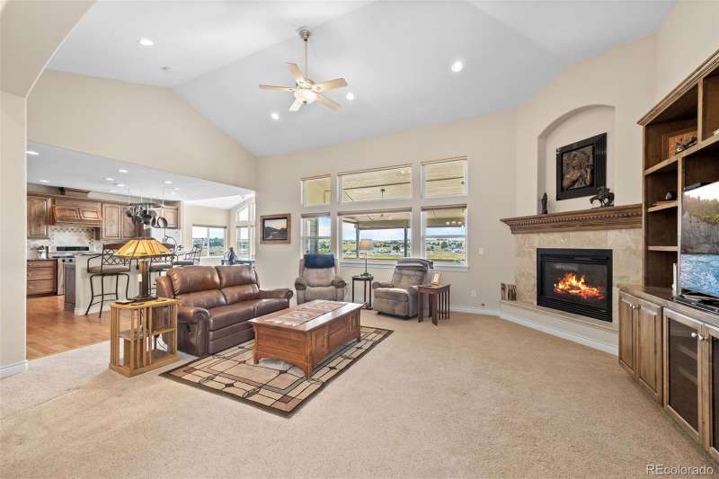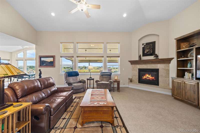 Welcome to your Colorado dream retreat! This sprawling 4,591 sq. ft. ranch-style home on 14.3 acres offers privacy, versatility, and breathtaking views of Pikes Peak-all with no HOA. With 4 bedrooms, 3 bathrooms, and dual primary suites, this home is perfect for multi-generational living or hosting long-term guests. The main floor boasts soaring 14-foot ceilings, a dedicated office with a custom built-in desk with floor-to-ceiling bookcases, and a warm, inviting kitchen featuring granite countertops, stainless steel appliances, pantry, and custom alder cabinetry. The main-floor primary suite offers views galore and a retreat to the jetted tub or large walk-in shower. Additional bedroom and adjoining bathroom on the main floor. The living room showcases a beautiful custom-crafted entertainment center, while the walk-out basement (10-foot ceilings) includes a wet bar with full size refrigerator and huge space for recreation, pre-wired for surround sound! Relax outdoors on the flagstone patio adorned with walkable thyme and a built-in firepit, enjoy the private pond, or soak up the meticulous landscaping, blooming flowers and organic garden. You'll find mature Spruce, Ponderosa and Austrian Pines, Blue Spruce creating privacy around the home and lot. For hobbyists and adventurers, a 200-foot shooting range and a 30x48 outbuilding with RV garage (12' & 15' doors) plus an upstairs workshop provide endless possibilities. The asphalt driveway and Maverix fiber optic internet ensure convenience. Easy access to Highway 86. This home is closer to the town of Elizabeth than it is to Kiowa. Whether you're seeking space for everyone, room for projects, or simply a peaceful setting close to town, this property delivers the perfect balance of comfort, function, and Colorado beauty.