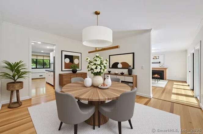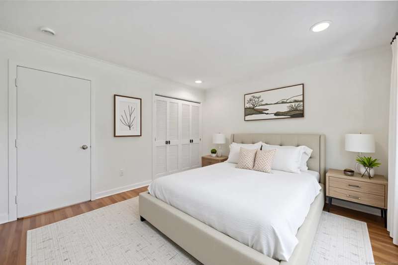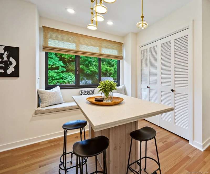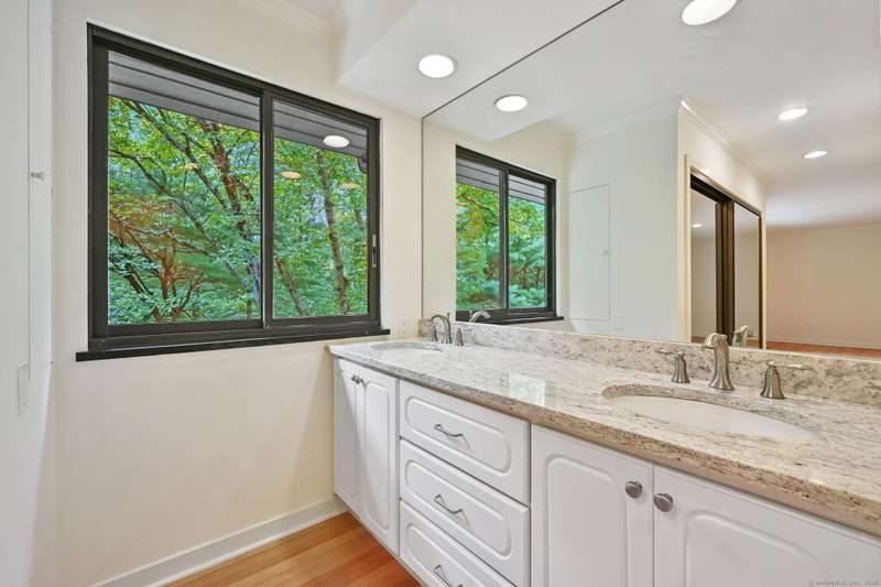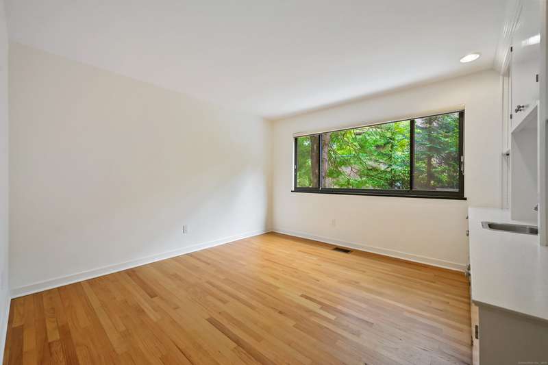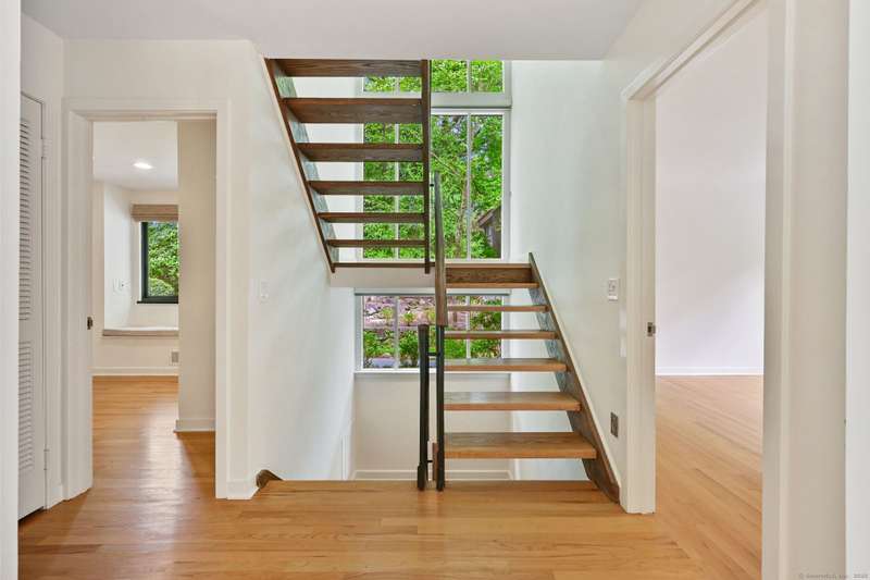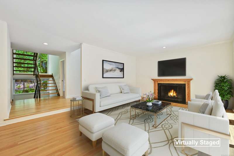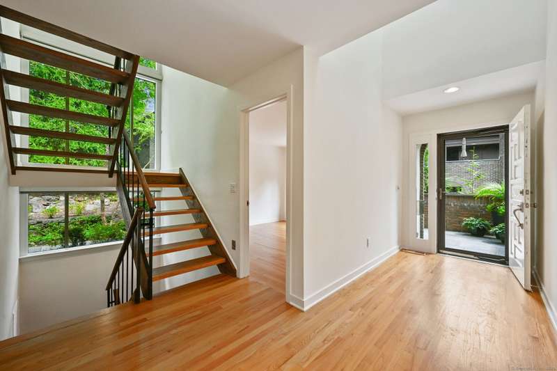 Spectacular, spacious and sun-filled 3BR, 2.5BA end-unit townhouse in highly desirable Canaan Close-just minutes from downtown New Canaan! This beautifully maintained home offers three finished levels, including a walkout lower level with deck-perfect for a family room, gym, or guest suite. The light-filled main level features hardwood floors, open living/dining with fireplace, and an updated kitchen with granite countertops and stainless steel appliances. A flexible first-floor office with wet bar is ideal for working from home or entertaining. Upstairs, the primary suite includes a walk-in closet and en-suite bath, along with two additional bedrooms and a full hall bath. A private main-level deck with retractable awning extends the living space outdoors. Additional features include central air, in-unit laundry, central vac, abundant storage, and a detached garage. Canaan Close offers beautifully landscaped grounds, a heated pool, and scenic walking trails along the Five Mile River. Prime location close to Metro-North, shops, dining, parks, and top-rated New Canaan schools. Enjoy low-maintenance, turnkey living in a peaceful and convenient setting!