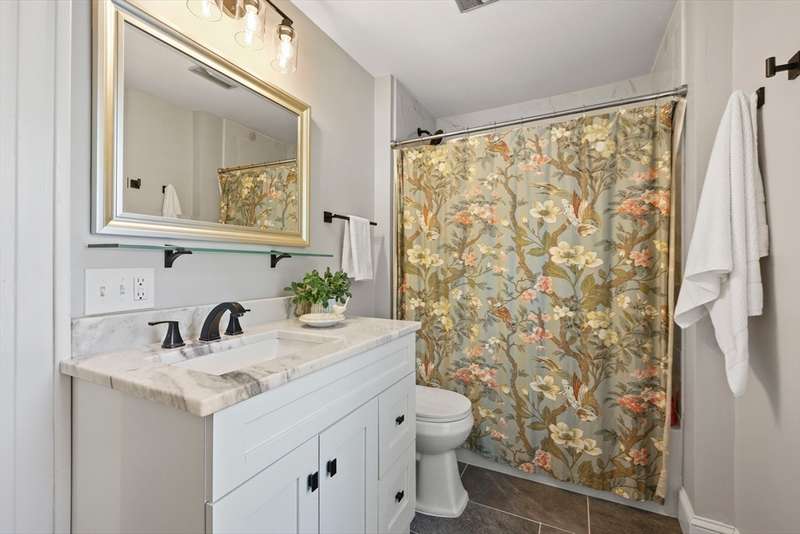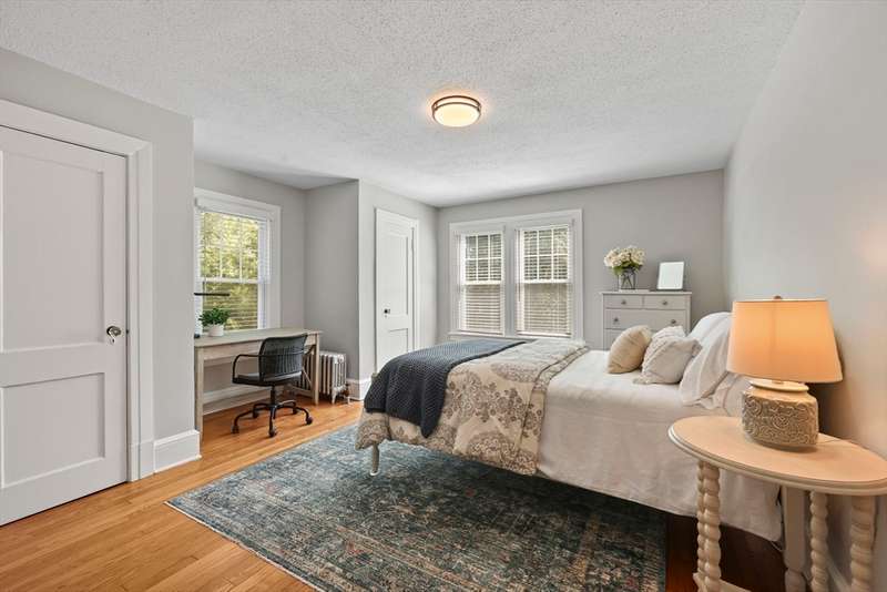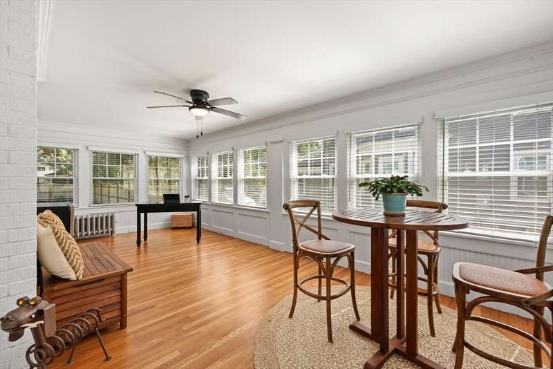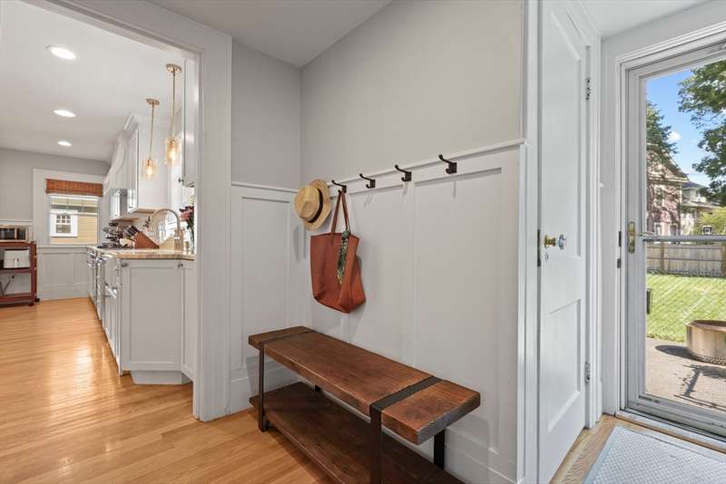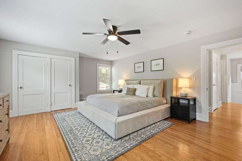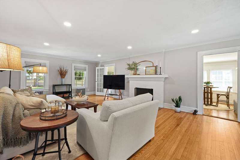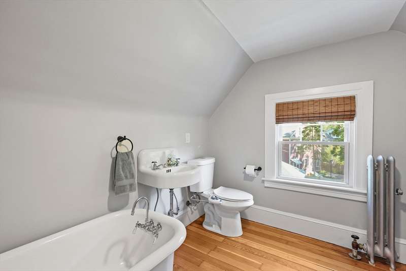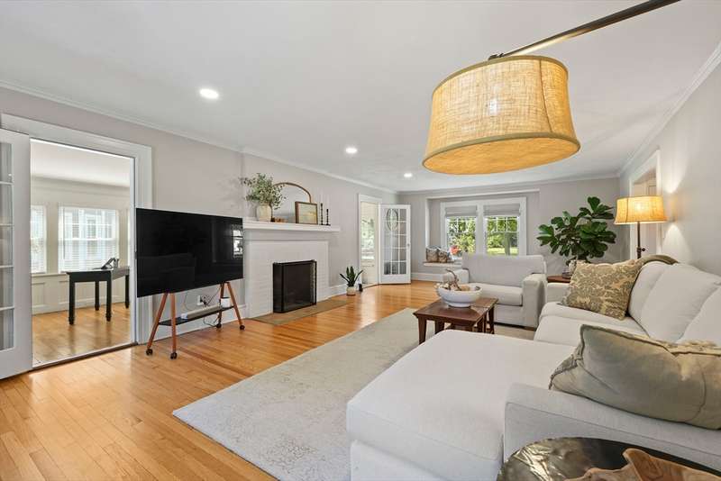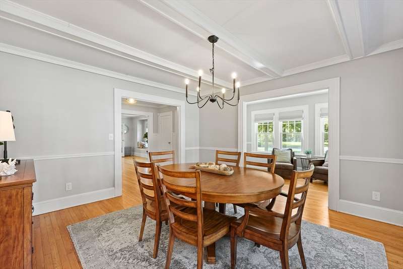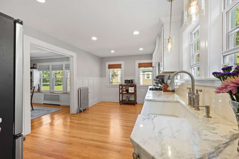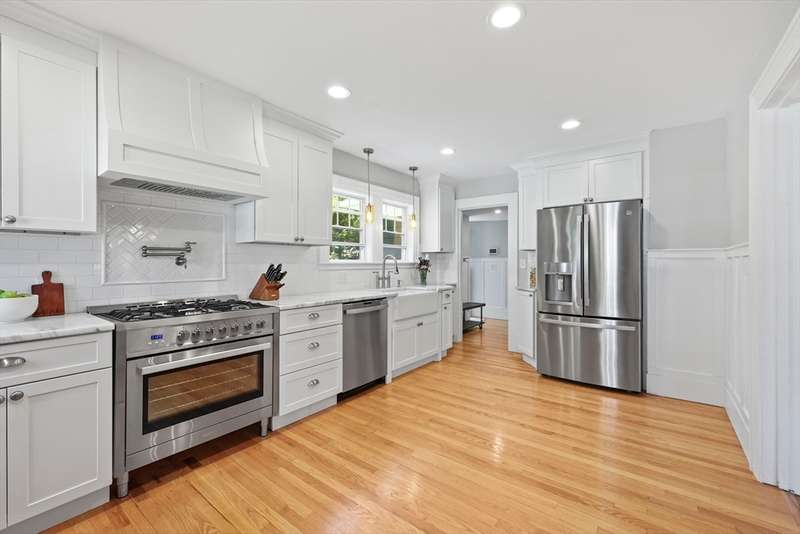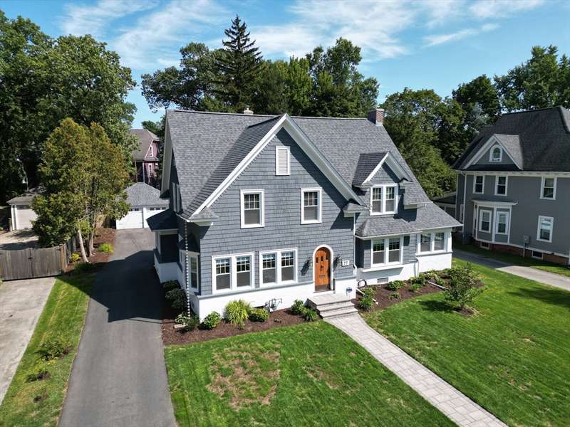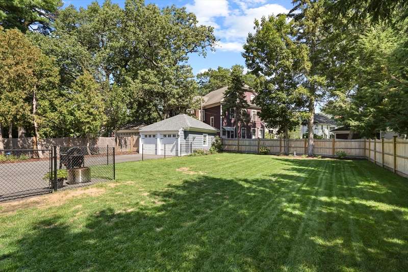 Renovated in the past three years, this colonial boasts pristine & generous interiors over 3 floors filled w/natural light, gleaming hardwood floors, beautiful millwork & neutral palette for effortless flow. Home's curb appeal is elevated by new windows, new roof, new chimneys, new hardscapes & landscape creating a warm & welcoming 1st impression. Spacious living room, anchored by fireplace, sets tone for home s impeccable condition w/charming family room beyond through French doors. Dining room, featuring beamed ceiling, custom built-in glass front cabinets, seamlessly connects to both the renovated light & bright kitchen w/white Shaker style cabinetry, quartzite tops, stainless appliances & cozy den/lounge. Adjacent mudroom has powder room & exterior access to fenced backyard & two car detached garage. Upper level has four bedrooms w/ample closet space & renovated full bath w/tiled tub & shower. Finished third floor has 5th bedroom/home office, full bath plus ample storage in eaves.