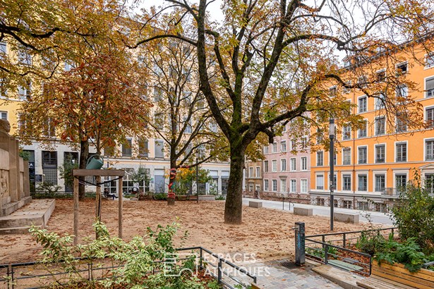 Located in the heart of the 1st arrondissement, on the beautiful and quiet Place Chardonnet, this exceptional 130sqm loft-style property seduces with its spectacular volumes and unique character. Access is via a separate entrance directly onto the square.
