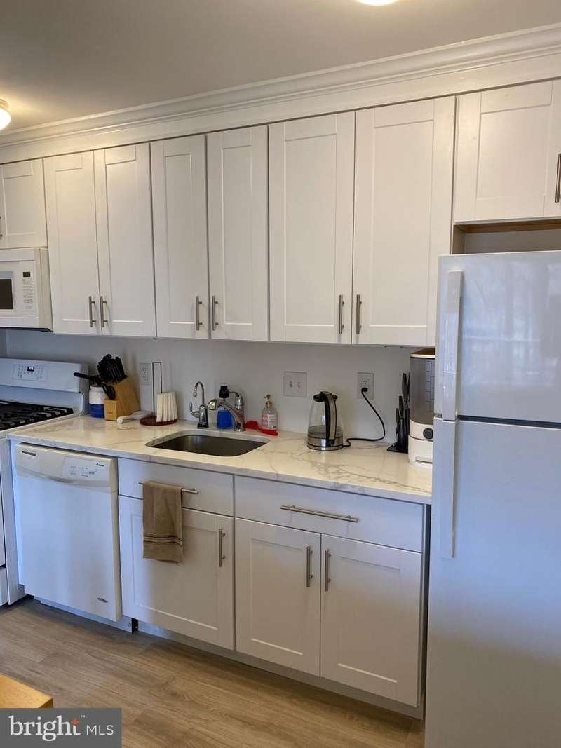 Sun lit 2 bedroom, 2 full bath unit on mid-level floor. Large balcony off dining area. Updated kitchen with large internal window allows sunlight in. In unit washer / dryer. Lowest monthly condo fee of surrounding communities. Monthly fee includes all utilities - electric; heat and water. Light filled unit.