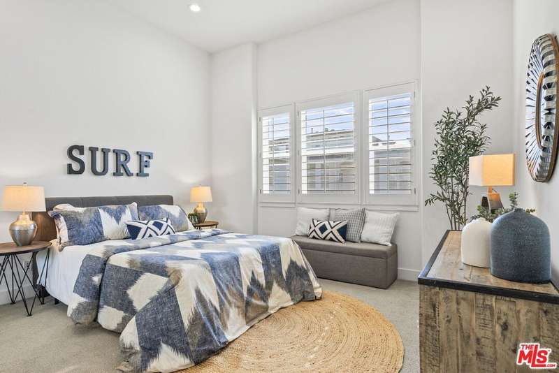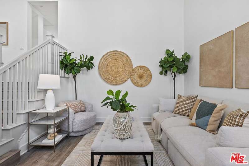 Beautifully updated Tapestry II coveted Plan B townhome. Upon entering the front door, a sun-filled, double-height living room with tall windows sets the tone. Step up to a dedicated dining space and continue to the family room, which is perfect for entertaining or lounging with built-in entertainment equipment storage, gas fireplace with a large wall above for a TV, as well as adjacent balcony. Open to the family room, the refreshed kitchen features newer white cabinetry, quartz countertops, Kitchen Aid stainless appliances, and a large picture window overlooking the balcony. Powder room located on the main level as well. Upstairs are three bedrooms, all with high ceilings and large windows. The spacious primary suite has an updated bath with separate shower and soaking tub, plus walk-in closet, and the two additional bedrooms share a hall bath. Full laundry room off of the garage on the lower level. Private 2-car garage with direct-entry features a Tesla universal EV charger and large bonus room plus additional crawl space storage. Other recent updates include LVP flooring in the living areas, fresh paint, and new LED recessed lighting. HOA dues cover cable, internet, alarm monitoring, and earthquake insurance. Prime interior setting facing a quiet courtyard, one block to Concert Park and close to Runway and The Resort. Enjoy Playa Vista's amazing lifestyle amenities including pools, fitness centers, parks, sports courts, playgrounds, and steps to shopping, entertainment, and dining.