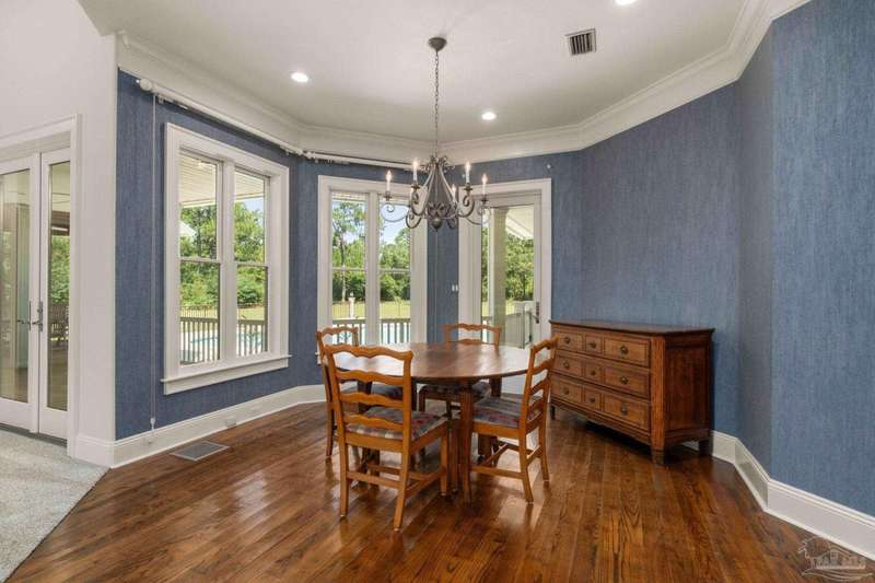 Incredibly rare opportunity to own 33-acre private Molino estate with endless possibilities. From the discrete gated entry, tree lined driveway, and immaculately maintained grounds, the tone is set for uncompromising attention to detail. A compliment to its surroundings, the over 9,000 sq ft custom home seamlessly blends formal and open-concept living. With its beautiful two-story foyer, cherry stained hardwood flooring, neutral color palette, 8' moulding and baseboards, new carpet, 10' ceilings, and LED recessed lighting, continuity is created throughout the entire home. The central gourmet kitchen features maple shaker style cabinetry, Sub-Zero refrigerator, butcher block island, double oven, tile backsplash. The kitchen flows into an informal dining area and impressive den with a 25' tongue-and-groove ceiling anchored by a full-height wood-burning fireplace with stone surround. Walls of windows provide a picturesque view of the landscape and gunite pool. Enjoy sunsets in the evening or the visiting deer in the morning.The sunroom with cathedral ceiling, office with built-in desks and secondary study, create areas for a growing family or those needing a home with flexible spaces. The spacious, light-filled main floor suite with vaulted ceilings and gas fireplace is a total retreat, while the spa-like master bath boasts a jetted soaking tub, double vanity, abundance of storage, walk-in shower and frameless shower doors. Each additional upper bedroom and bath is equally as bright and well appointed. Aside entertaining, the finished basement with 8' clngs., separate entry, full bath, gym and kitchenette creates a perfect Au Pair/guest quarters, while the impressive barn/workshop with office, 10' doors and full bath is an extension of the home. The potential options are only limited by one's imagination.