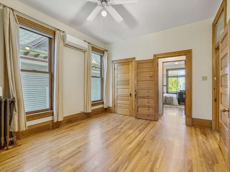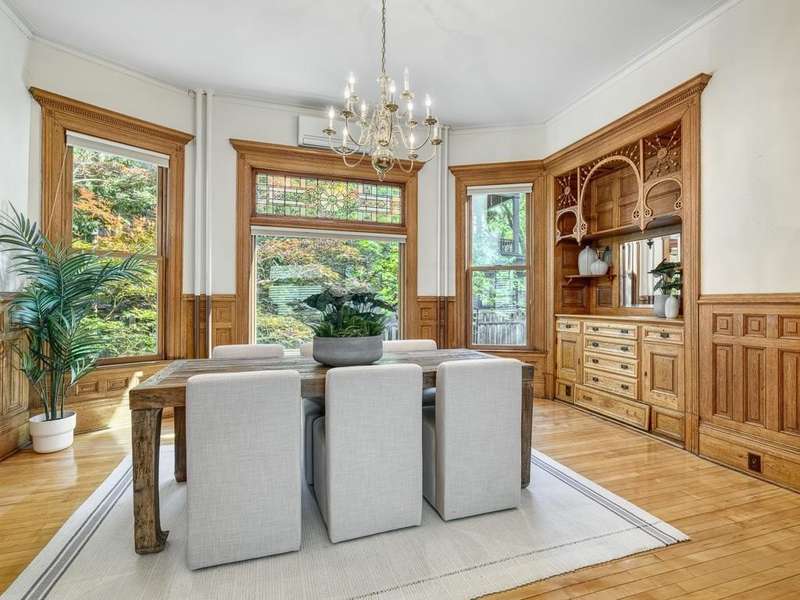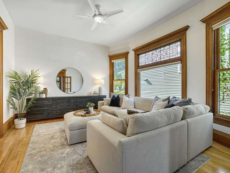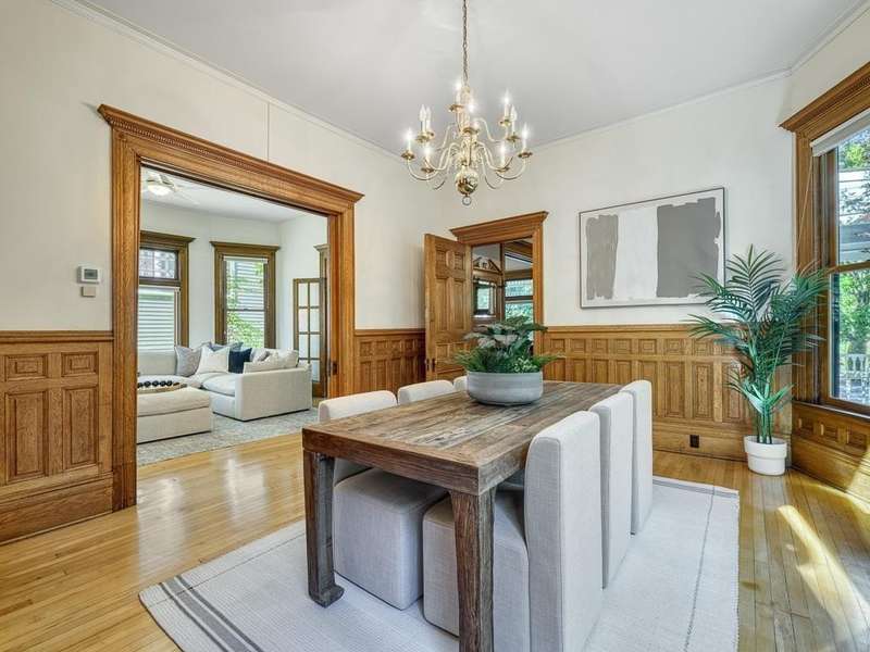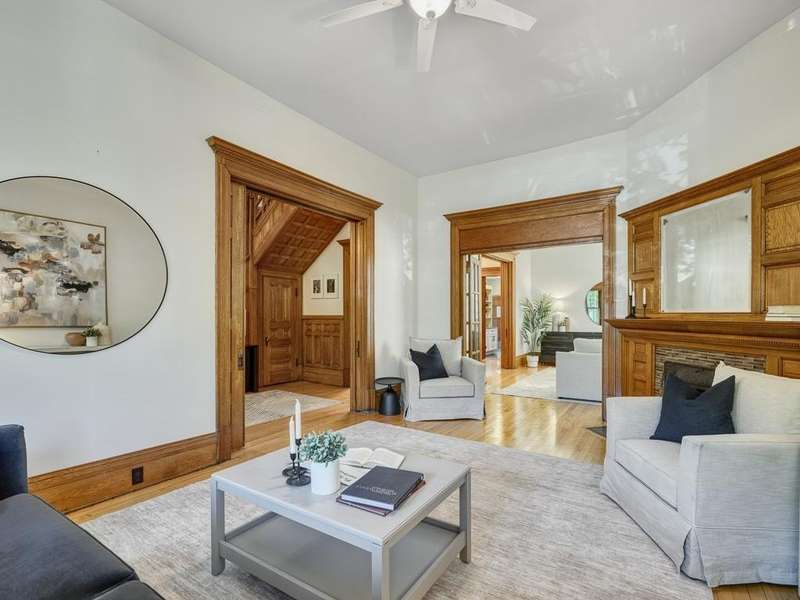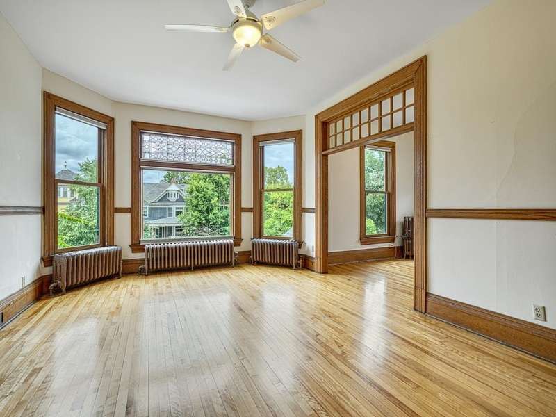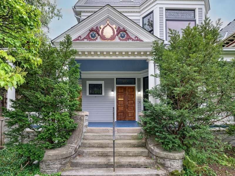 This exceptional Victorian has been lovingly renovated. Enjoy new windows, new siding w/ insulation, fabulous new cook designed kitchen with sunny eating area and 2 new bathrooms. The original natural woodwork is incredible and the natural light exceptional. Classic wrap-around porch in front and a screened porch in the rear. Polished floors and tall, elegant ceilings throughout. Primary bedroom with fireplace and walk in dressing room with custom closet system. 4 beautiful bedrooms and laundry on second level. There is a self- contained 3rd floor, 2 bedrooms, 1 bath apartment with a private entrance. Perfect for additional bedrooms, family room or a private workspace. 3 garages and an oversized lot. This gorgeous home is in a perfect walking neighborhood. Minutes to restaurants, parks and downtown.