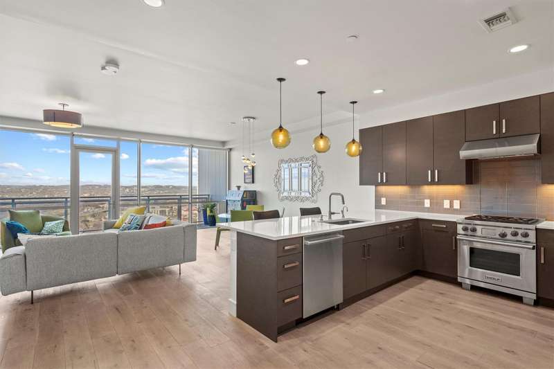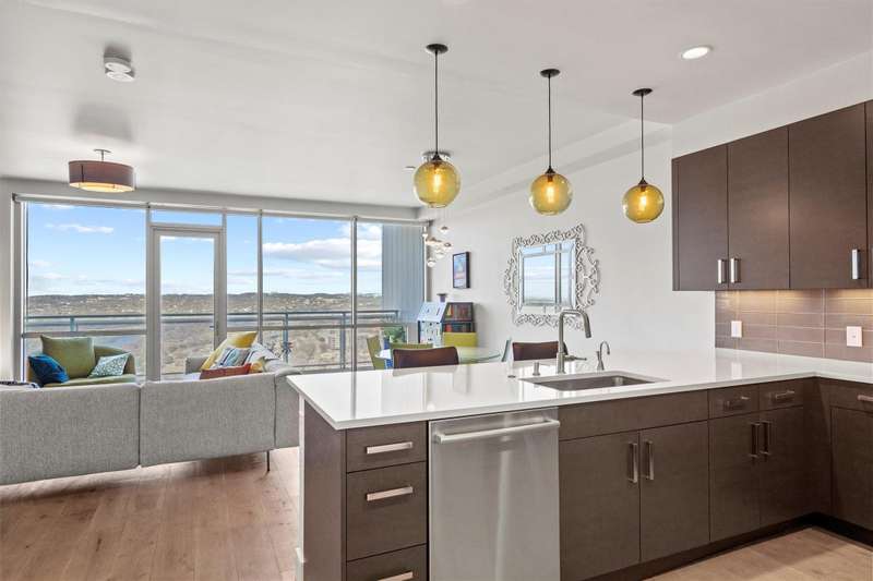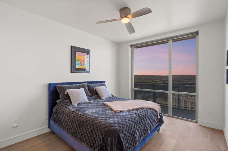 28TH FLOOR SEAHOLM CONDO WITH WEST FACING UNOBSTRUCTED VIEWS OF LADY BIRD LAKE & ZILKER PARK Experience luxury downtown living in this stunning 2-bed, 2-bath condo at Seaholm Residences, offering breathtaking west-facing views of Lady Bird Lake and vibrant sunsets. Floor-to-ceiling windows, hardwood floors, and a full-length balcony create an elegant, open feel. The modern kitchen features quartz countertops, a 36" Subzero refrigerator, Wolf gas range, Wolf microwave drawer, and Bosch dishwasher. Electric blinds throughout, with blackout blinds in the bedrooms, add convenience and privacy. The primary suite boasts sound-reducing windows and a spa-inspired bath with a soaking tub and separate shower. A Murphy bed in the second bedroom maximizes space, while a full-size Whirlpool washer/dryer and Nest climate control add modern comfort. Seaholm's 10th-floor sky deck offers a resort-style heated pool, fitness center, grilling stations, a clubroom, business center, and a dog park with a pet wash station. Trader Joe's, the Central Library, Lady Bird Lake trails, and Shoal Creek Greenbelt are just steps away, with Whole Foods, ACL Live, and 2nd Street District nearby. With Google Fiber availability and a prime downtown location, this condo is an incredible opportunity for luxury city living.