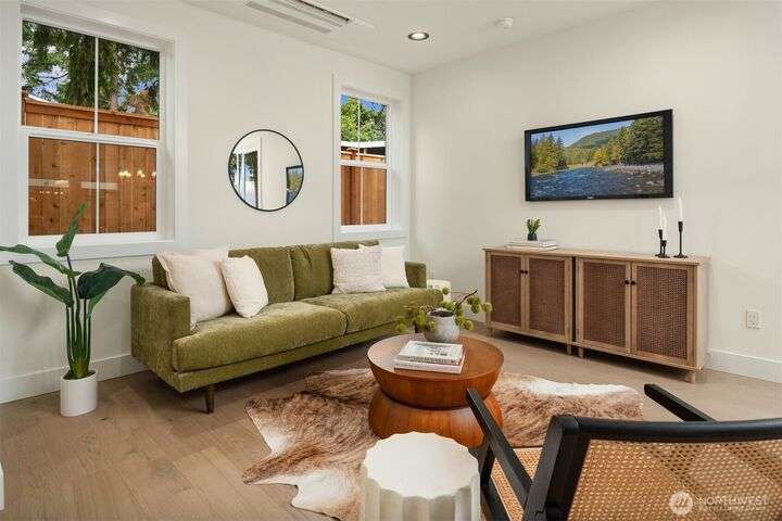 Exceptional value for new construction w/Lake views in the coveted Norkirk community! Nestled on a quiet dead-end street, this captivating residence boasts an inviting interior loaded w/chic designer finishes. Convenient floorplan features open concept gathering spaces, stylish chef’s epicurean kitchen & spacious upper level providing 2BRs/2BAs. Thoughtfully crafted layout includes luxurious primary suite w/westerly views of Lake WA & stunning sunsets, dedicated laundry rm & rare 2-car tandem parking. Sought-after East of Market location in one of the premier communities on the entire Eastside: just steps from incredible parks & award-winning Lake WA schools, w/easy access to vibrant shopping/dining, DT Kirkland waterfront & Juanita Village
