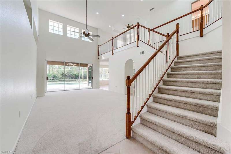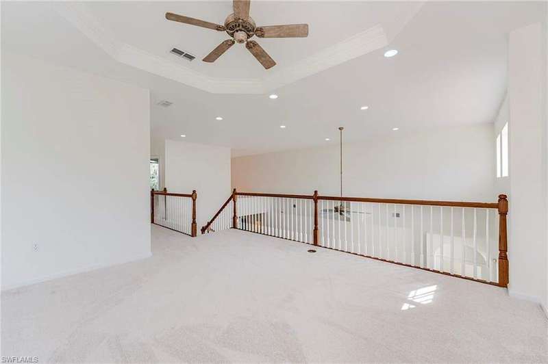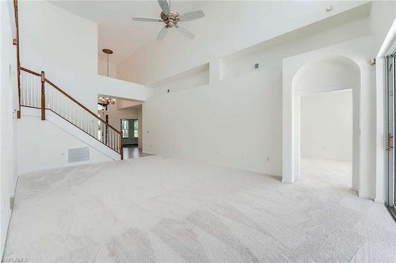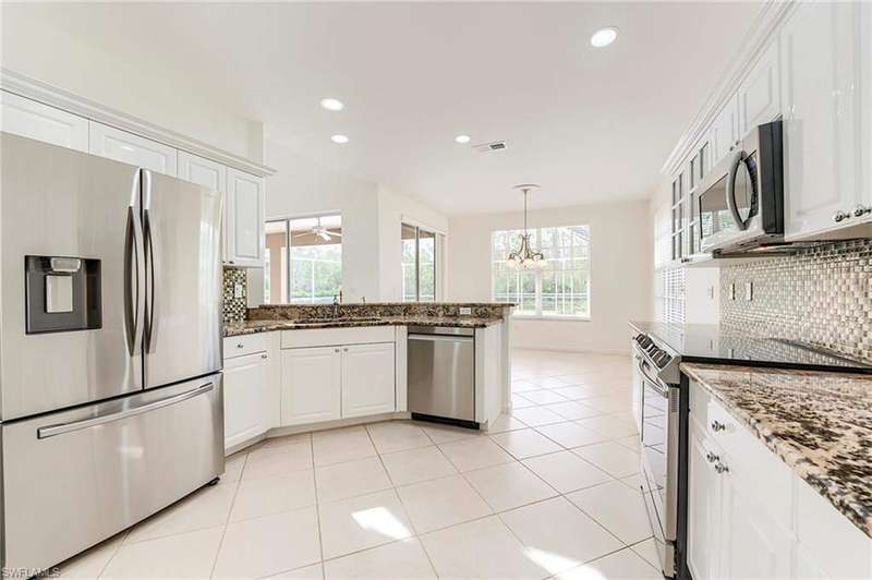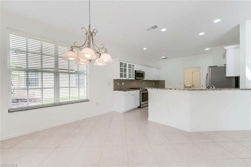 Newly painted and carpeted, this popular Kingfisher model is nestled within the highly coveted Oak Strand neighborhood. Being in the center of the community, your lanai is quietly serene. The lanai was enlarged and features a large pool and shellstone decking; the extraordinary lake and forest view's Southern exposure gives you sun all day long during season. 2020 roof and updated kitchen appliances. AC, water heater, pool heater and pool pump replaced in 2020. Natural gas available. Fiber to the home provides lightning fast internet and television. Member owned Shadow Wood Country Club offers 54 holes of championship golf, 2 club houses, 9 Har Tru tennis courts, bocce, outdoor fire pits, access to a private beach club, fitness center, full-service spa, pickle ball, and private restaurant. New Lifestyle Amenity Center will add 2 resort style pools with zero-depth entry, lap lanes and dedicated kids pool, poolside restaurant & bar, 6 indoor pickleball courts, new racquet pro shop and a grab & go cafe. Great location close to shopping, airport, beaches and much, much more.