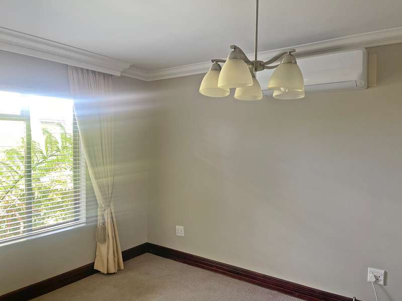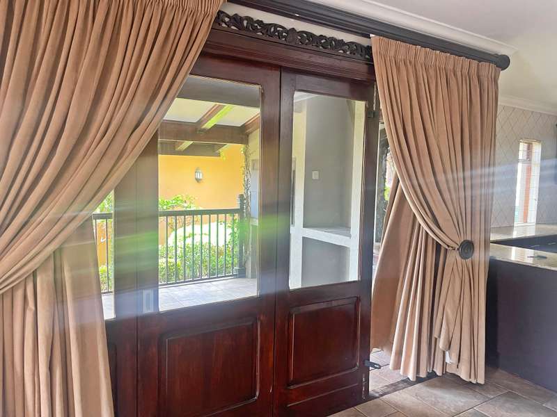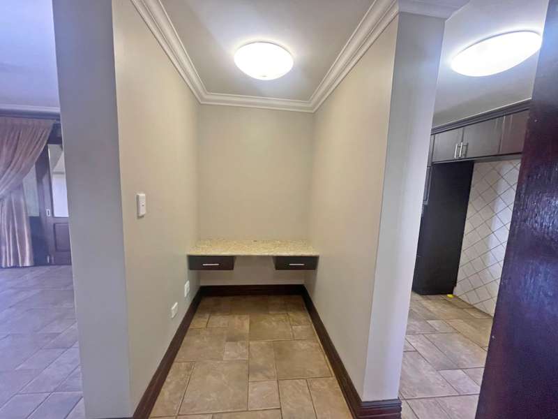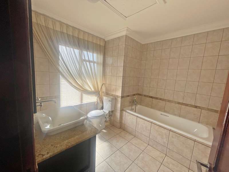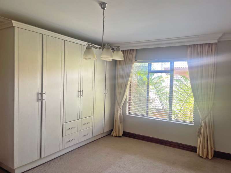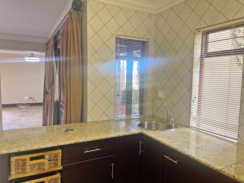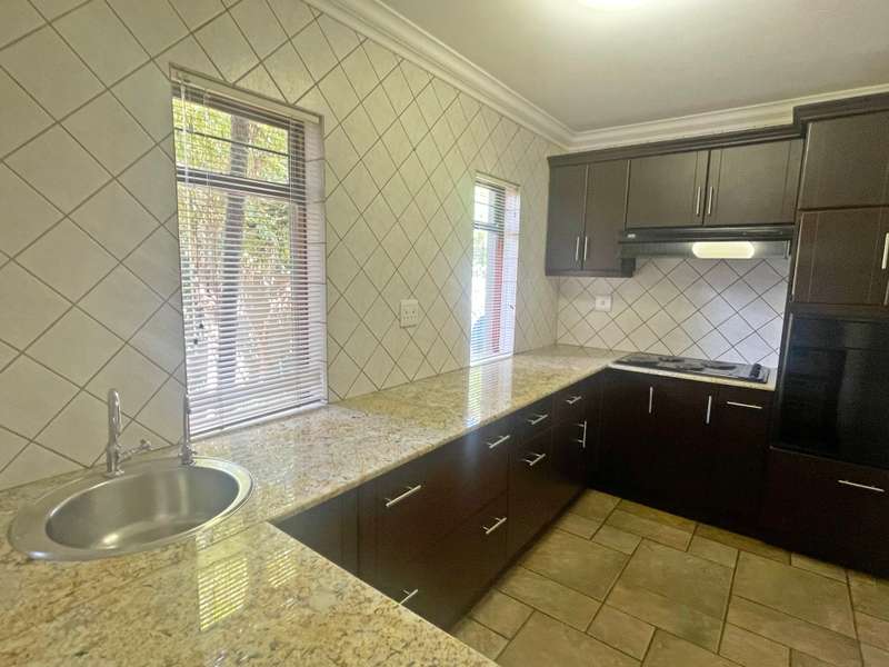MUST BE SEEN TO BE APPRECIATED One of a kind - This Prestigious Property was built for the Entertainer and was designed with the most efficient space utilization, visibly increasing the usable area. All fittings and features are of the best quality. This modern townhouse offers three spacious bedrooms with three ensuite Bathrooms, a Guest toilet, three open-plan living areas, and a patio with a built-in braai. The braai area leads directly to a small landscaped garden with an irrigation system, which is easily maintained. Furthermore, the functional open-plan kitchen features an eye-level oven, hob, granite tops, and extractor fan. The separate scullery provides additional cupboard space. A bonus is the good-sized walk-in Pantry. The Automated Double Garage with additional built-in cupboards provides direct access to the house. Additional parking for visitors. A Communal swimming pool, entertainment area, and change rooms are also available in the complex. Additional features: Three Air conditioners Guest toilet Alarm System Burglar Bars and Security Gates Fiber Cell to Gate Access Blinds All curtains are included Water filter Computerised irrigation system Pet friendly Well worth a phone call to arrange a private viewing.