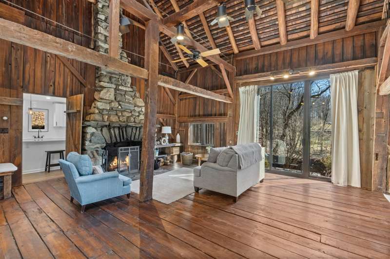 Welcome home to this charming country retreat, featuring wide plank flooring, a vaulted ceiling with exposed beams and rustic paneling. Nestled on nearly five acres in the Byram Hills School District, this enchanting home also boasts a pool for perfect countryside living and entertaining. A stunning two-story grand room featuring a towering floor -to-ceiling stone fireplace, two sets of glass doors leading outside, and a hidden circular staircase that ascends to a large loft. A fully equipped Chef's kitchen and breakfast room featuring custom built-ins and glass doors that open to an inviting stone patio. Primary Bedroom with a full hall bathroom completes the main level. Upper level consists of 3 Bedrooms, full Hall Bathroom, Laundry and an office. A secluded and charming stone patio, enhanced by outdoor lighting, creates the perfect ambiance for wine tasting and entertaining. As a crowning touch, enjoy the privately set pool beautifully framed by gardens and stone walls. Set on nearly 5 acres, the property also features level playing lawn surrounded by mature landscaping for ultimate privacy and tranquility.
