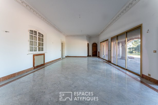 Upon entering, a vast living room with marble floors establishes itself as the heart of the house. Bathed in natural light, it opens generously onto the garden and the swimming pool. A functional and elegant kitchen adjoins this space and provides access to a bright dining room. The master suite, located on the ground floor, is distinguished by its ceilings adorned with moldings and its spectacular bathroom, whose bay windows extend the perspectives like a living painting in perpetual connection with nature.