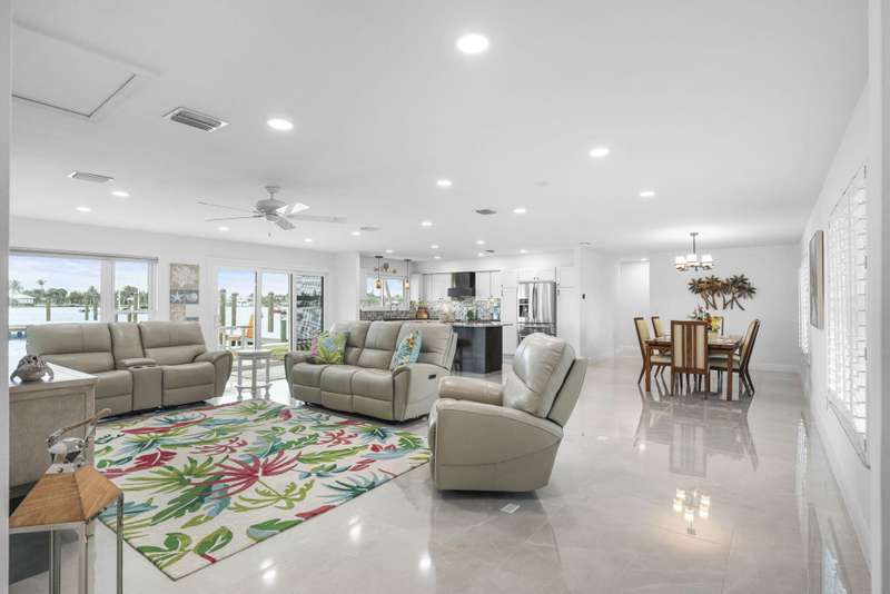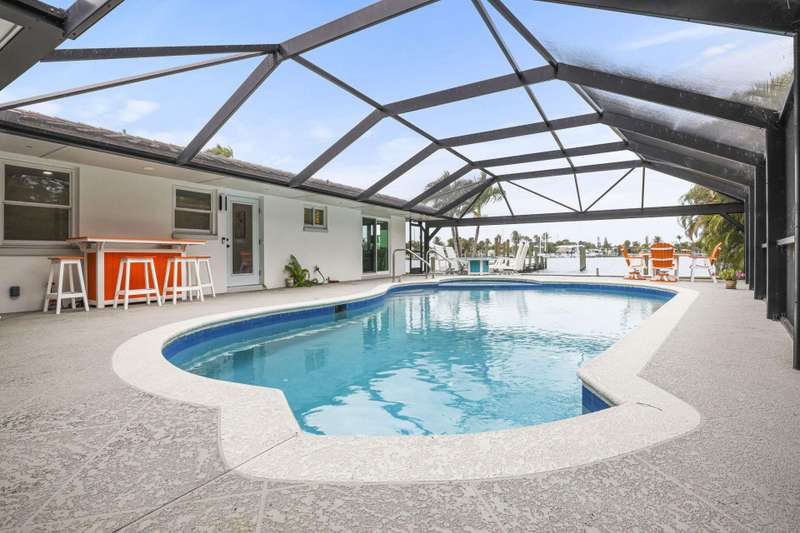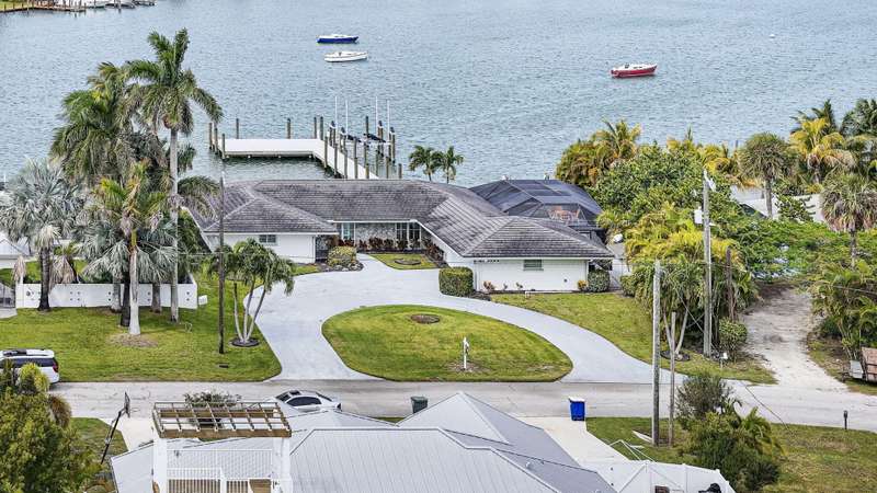 Prime location on the deep water protected Faber Cove. New seawall and new top quality super-large dock & lift. Beautifully renovated home, including all impact glass windows and doors; lovely tile throughout. Walk in and wow! Full wall of windows with amazing water views. Watch the dolphins playing and fish jumping. Light and bright open floor plan with modern finishes and large windows to enjoy that great view. Large screened and heated waterfront pool to enjoy all year. Bring your 50, 60, 70-ft boat and all the toys. No fixed bridges; you are out in the ocean in minutes. The only house for sale now on Faber Cove--a rare gem! World-renowned fishing, boating, restaurants, beaches. You cant buy this home anywhere else for this price. Call today!