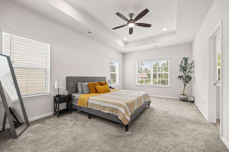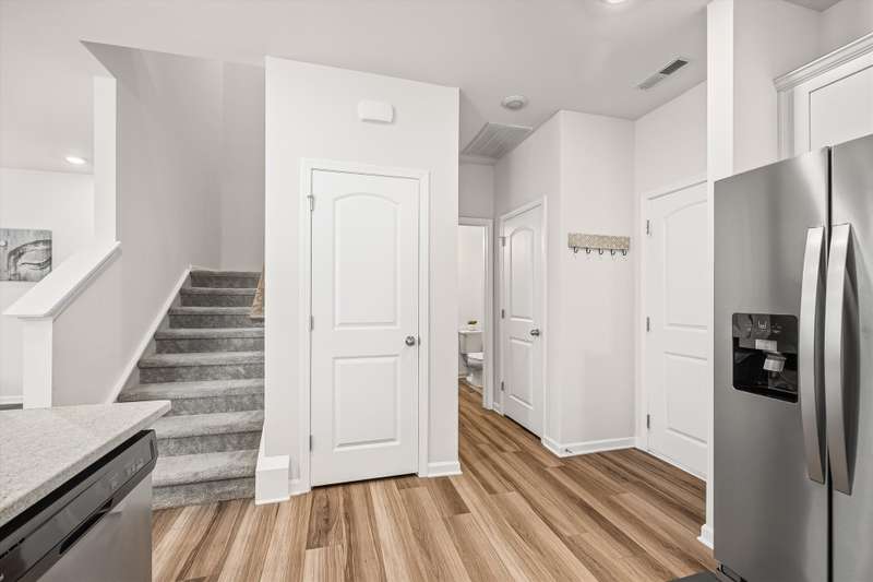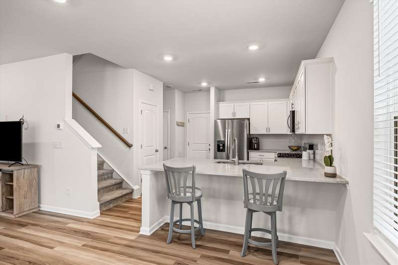 Welcome to this nearly new end-unit townhome in the desirable Auden community! Built in 2023, this home features an open floorplan with tall ceilings on both levels, creating a bright and spacious feel throughout. The open layout invites connection?whether you're cooking in the beautiful kitchen with granite counters and stainless appliances or relaxing in the spacious living area. Upstairs, the primary suite offers a peaceful retreat with a tray ceiling, tiled shower, and dual walk-in closets. Each bedroom provides generous space and storage, making the home as functional as it is comfortable. Designed for today's lifestyle, it's hardwired with Cat6 cables for lightning-fast internet, ideal for work or streaming. With a two-car attached garage, included refrigerator, washer, and dryer, and a location close to shopping, dining, and medical care?you can simply move in and start enjoying life.