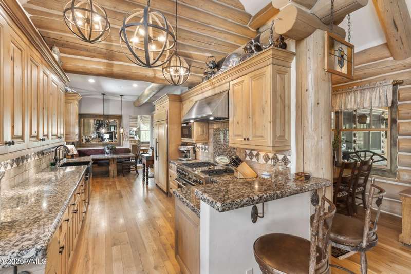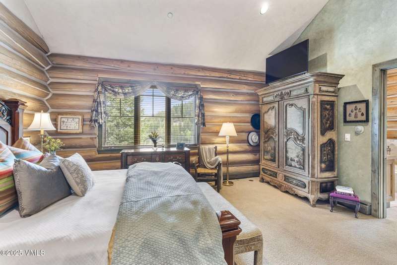 This may be just what you are looking for - a peaceful, serene setting in the exciting and active community of Cordillera! Situated in an idyllic spot on The Ranch, this custom retreat was built by a well-respected Vail Valley builder and overlooks two sparkling ponds with exceptional views to the Red and White Mountains beyond. The home is perfectly situated between the Mountain Golf Course/Clubhouse and the Cordillera Athletic Center and borders hiking trails and an active elk migratory path. Inside, the elevated log design feels like a true Colorado mountain home with 4 bedrooms, 4.5 bathrooms and 4835 square feet. Among the special features are a main floor primary suite and an upper-level primary suite; a chef's kitchen with a 48'' gas range, wine cooler, a Sub Zero refrigerator and a large granite farmhouse sink; a rare wood burning fireplace. The lower level features an additional living room, 2 bedroom suites, a large mirrored exercise room, wet bar and stone wine cellar. Outside, the property features an elevated deck, a 60 x 12 foot bocce ball court and several covered and uncovered patios which are wonderful for entertaining. This home and grounds have been impeccably maintained, and includes a new DaVinci roof, boiler, hardwood flooring on the lower level and gorgeous landscaping. The property is one of only a few with a 4.5 car garage with 10.5' ceilings and a separate 575 sq feet of interior storage that is not included in the overall square footage of the home. Offered partially furnished.