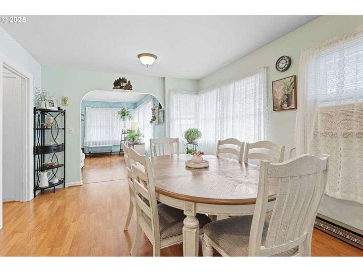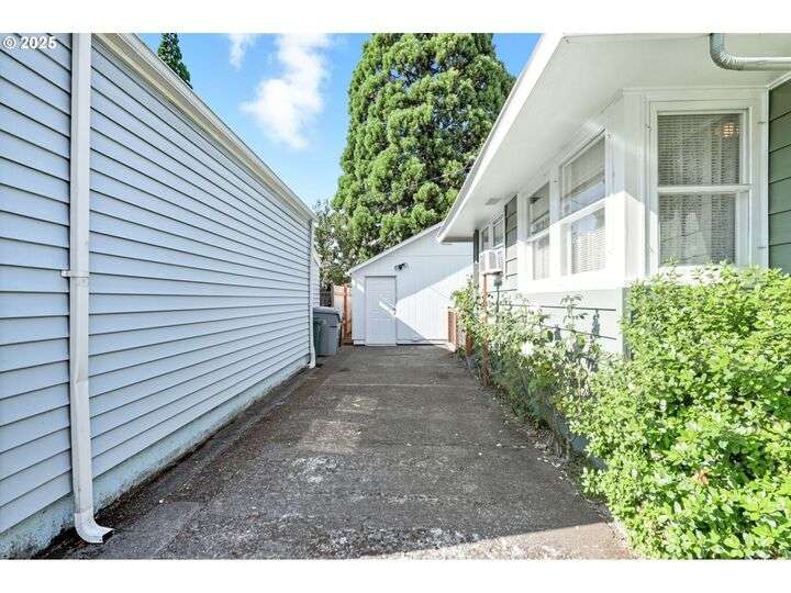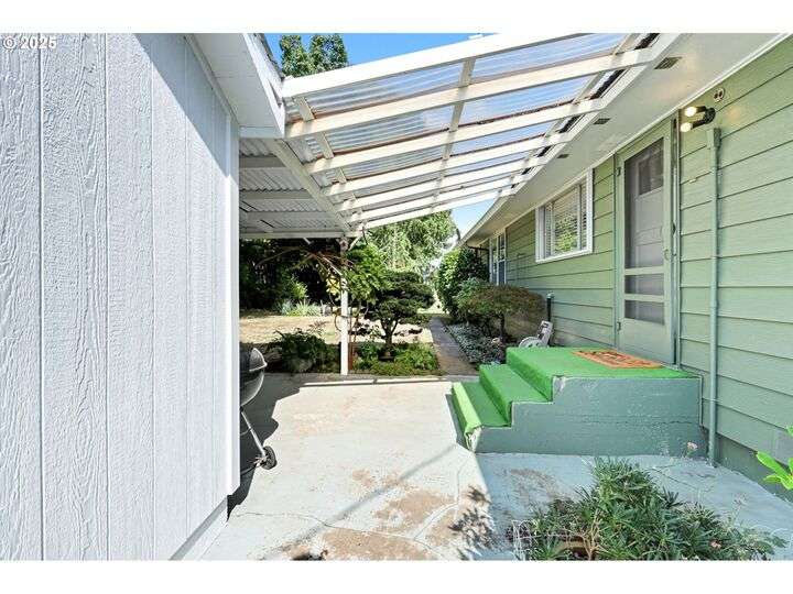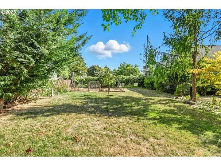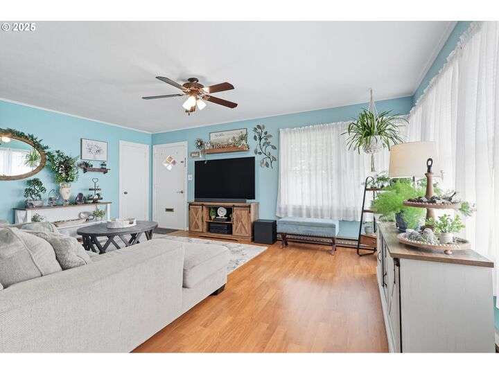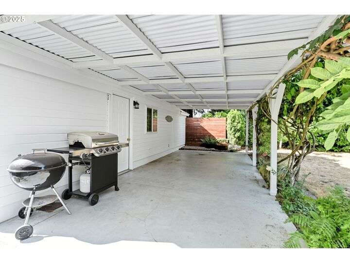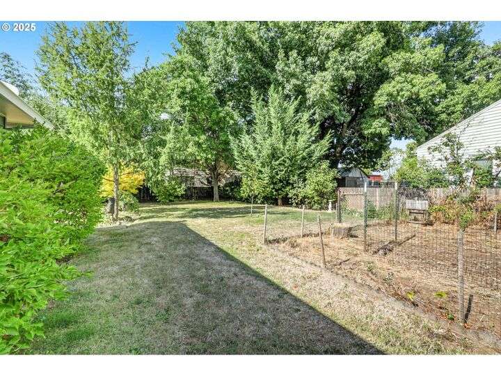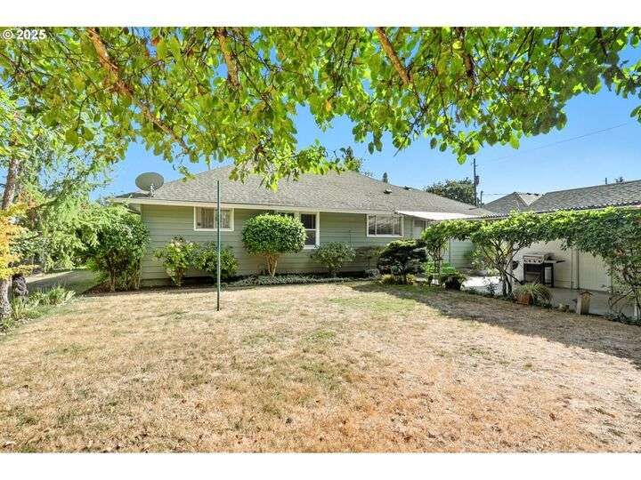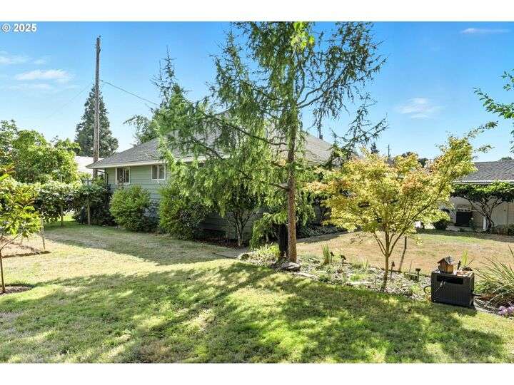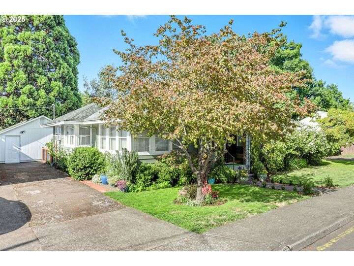 Private urban-Canby living awaits! Sparkling, sun-drenched home is perched on a robustly planted double lot”, creating rare privacy in the close-in residential sweet-spot of Canby. Sunshine streams in through banks of windows flanking the open living and dining areas. Home is incredibly cheerful, clean and bright, bringing big smiles upon entering. Traditional charm with 4 bedrooms and 1 & 1/2 bathrooms, all on one-level (Clackamas County says it’s 1,508 sqft.) Sturdy laminate flooring throughout, with cupboards and storage galore! Covered patio provides entrance to a BONUS DWELLING (409 sqft.) Recently used as a workshop and game room, this BONUS-space can be tailored to a myriad of uses. BONUS is also all one-level with full bath, great room and an additional office/sleeping room. The property is nearly a quarter acre, with mature trees, special plantings and raised garden beds loved and visited by birds and squirrels daily. In addition to the driveway, a paved parking pad creates easy access for guests and family. An oasis of options in the heart of the City of Canby.