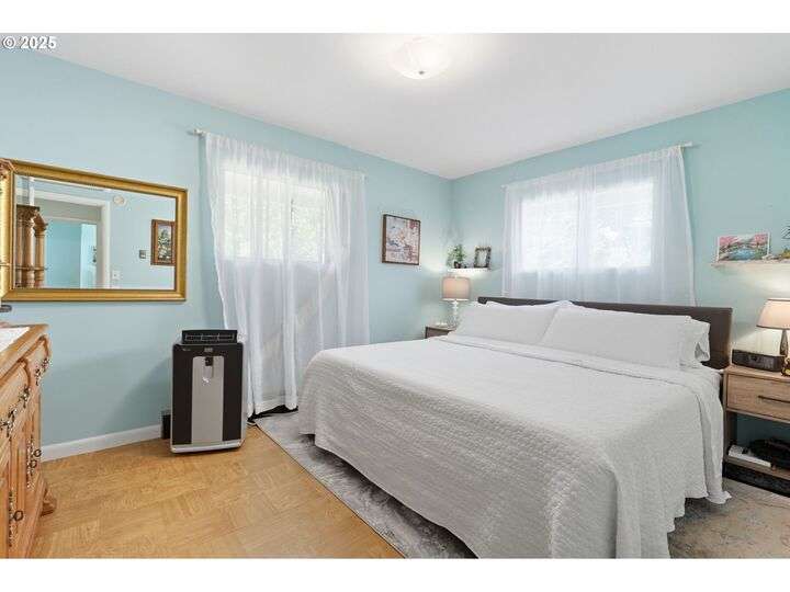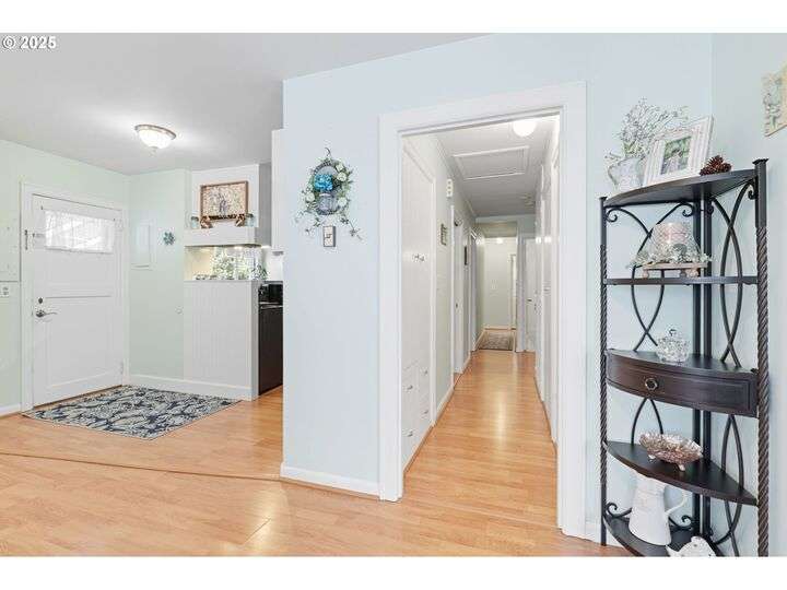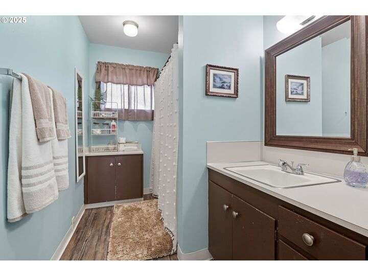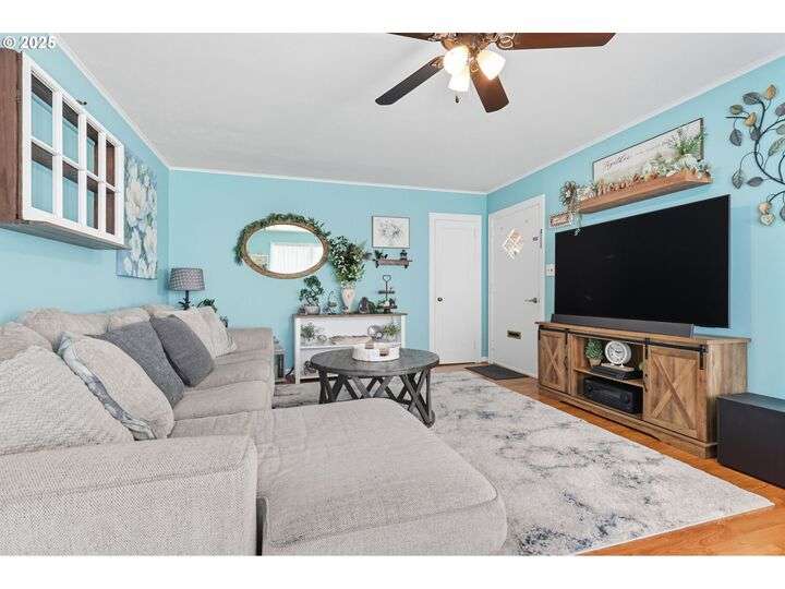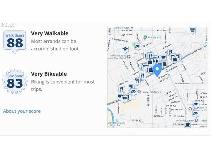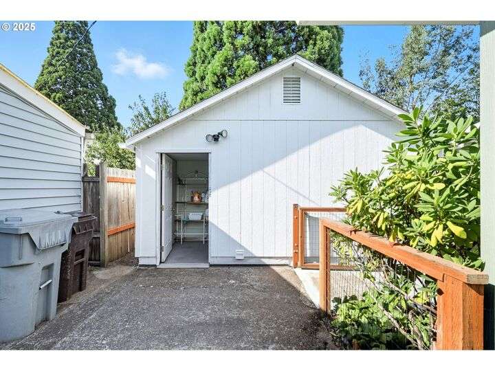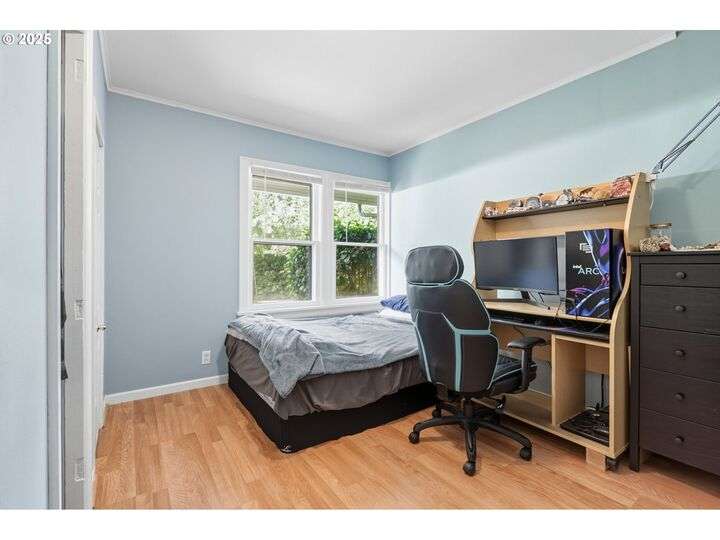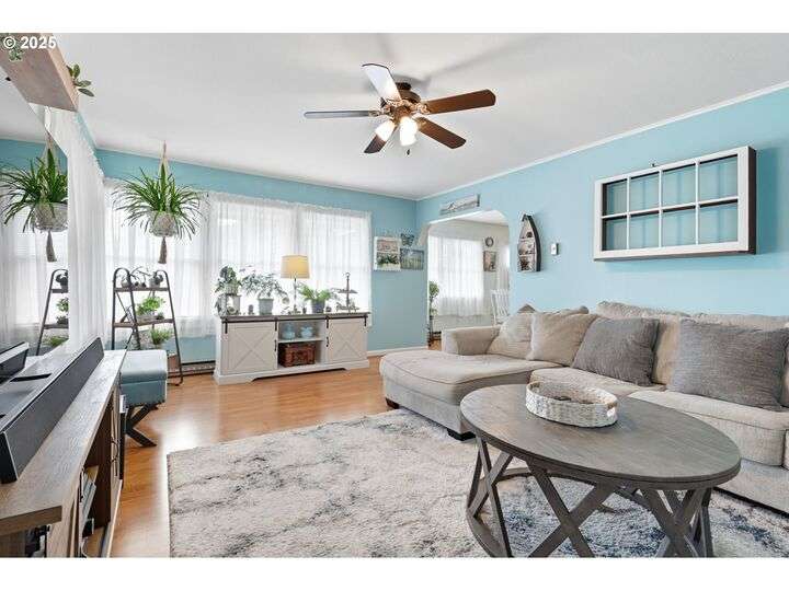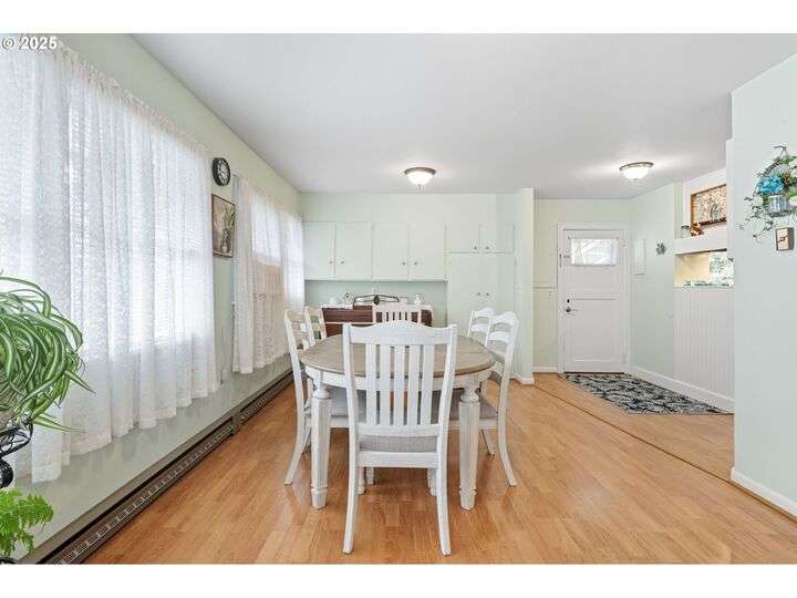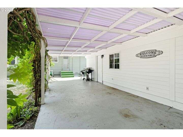 Private urban-Canby living awaits! Sparkling, sun-drenched home is perched on a robustly planted double lot”, creating rare privacy in the close-in residential sweet-spot of Canby. Sunshine streams in through banks of windows flanking the open living and dining areas. Home is incredibly cheerful, clean and bright, bringing big smiles upon entering. Traditional charm with 4 bedrooms and 1 & 1/2 bathrooms, all on one-level (Clackamas County says it’s 1,508 sqft.) Sturdy laminate flooring throughout, with cupboards and storage galore! Covered patio provides entrance to a BONUS DWELLING (409 sqft.) Recently used as a workshop and game room, this BONUS-space can be tailored to a myriad of uses. BONUS is also all one-level with full bath, great room and an additional office/sleeping room. The property is nearly a quarter acre, with mature trees, special plantings and raised garden beds loved and visited by birds and squirrels daily. In addition to the driveway, a paved parking pad creates easy access for guests and family. An oasis of options in the heart of the City of Canby.
