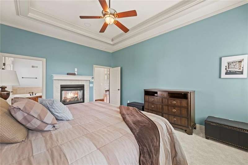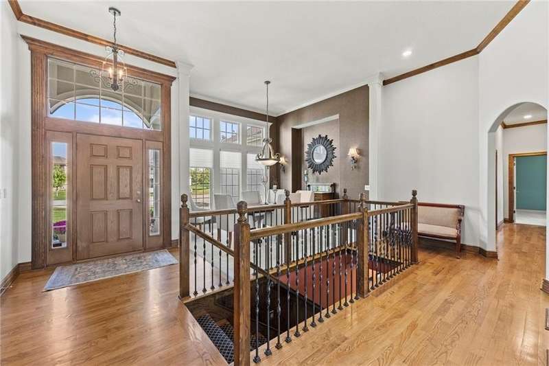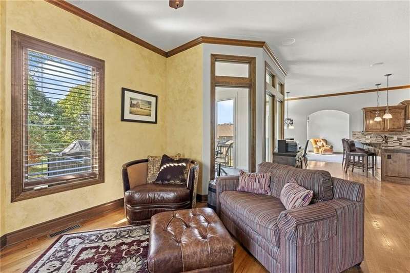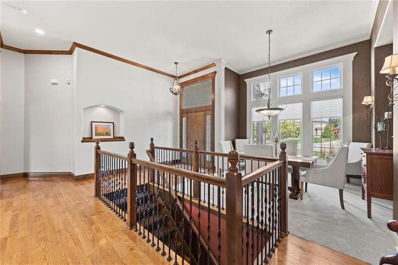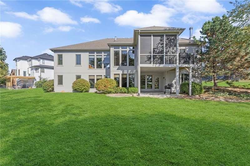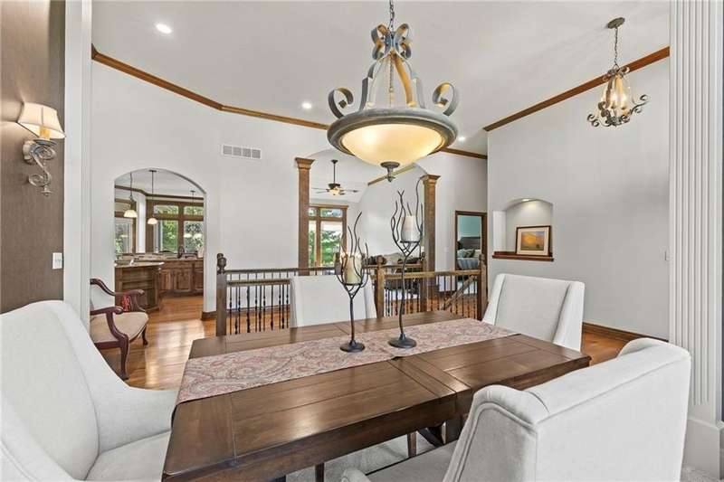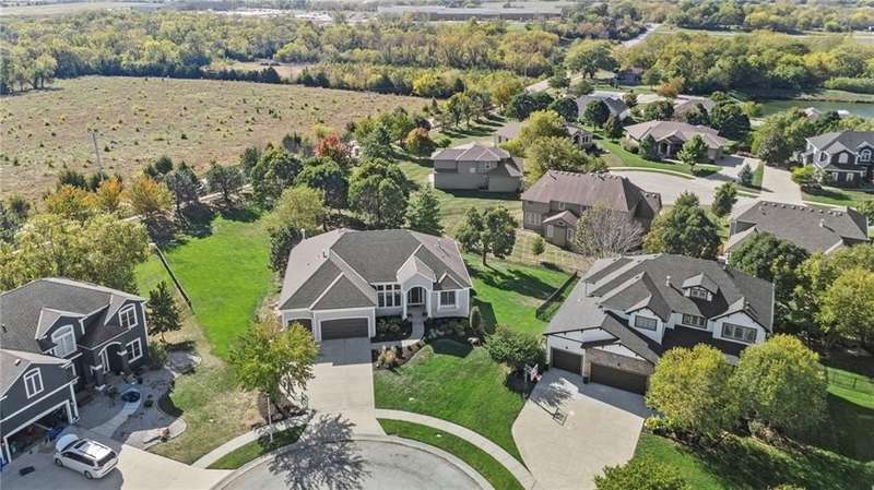 Gorgeous 4000+sf reverse 1.5 story with 3 fireplaces including hearth room off kitchen, great room and master bedroom! New screened in deck, finished walkout lower level with wetbar and 3 bedrooms. Kitchen features stainless appliances, large island, bar seating and granite counters! Fresh paint and new carpet in entire main level! Cul-de-sac location and De Soto school district! Neighborhood Pool too!
