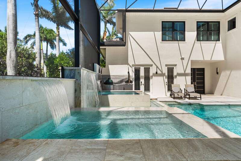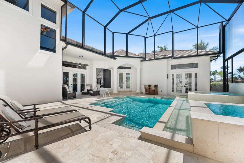 Exclusive Opportunity in Gulf Harbour | Seaside Estates Courtyard Home with Sport Membership Included! Limited-Time Offer: Seller will purchase a Sport Membership ($20K value) for the buyer! Act now before membership pricing increases. Welcome to luxury Florida living in this custom-built courtyard estate located in the prestigious Seaside Estates of Gulf Harbour Yacht & Country Club. Originally designed as the Toll Brothers model home, this 5-bedroom, 4.5-bath residence with a 3-car garage is perfectly positioned on one of the largest and most desirable lakefront lots-offering panoramic views of the tranquil water and the 18th fairway. Resort-Style Courtyard Oasis Step through double wood entry doors into a private courtyard retreat, complete with a saltwater pool, hot tub, and rare 5-ft deep hot/cold plunge tank. The pool area has been recently enhanced with: Three cascading waterfalls over a marble feature wall New LED lighting & tile (2024) Wi-Fi-controlled pool equipment Brand-new Fabritech cage (2024) Limestone tile pool deck Elegant Interiors The open-concept layout is designed for comfort and entertaining, showcasing 12-ft ceilings, Italian tile flooring, crown molding, and two spacious living areas. The chef's kitchen offers granite counters, stainless steel appliances, and a passthrough window to the lanai-perfect for gatherings. Private Retreats Primary suite: seating area, lanai access, dual walk-in closets, spa-inspired bath with soaking tub & walk-in shower. Mother-in-law casita: private entrance & full bath-ideal for guests or multigenerational living. Upstairs: 3 additional bedrooms, including one ensuite + a Jack & Jill bath for added comfort. Outdoor Entertaining Host in style with the fully equipped outdoor kitchen featuring: stainless steel sink, refrigerator, gas grill, Green Egg smoker, and an Ooni pizza oven. Recent Updates (2024 & recent years) New driveway, fresh interior/exterior paint New soffits, eavestroughs, and downspouts Hardened stucco trim for durability New upstairs A/C (2024); main A/C (3 yrs old) Upgraded LED recessed lighting throughout New fans (casita, lanai, family room) New exterior lighting & entry doors Flo by Moen water shut-off system New dishwasher + 2 wine refrigerators Bonus Opportunities Seller's Golf Membership & 50' boat slip in Gulf Harbour Marina available for separate purchase Transferable flood insurance for added peace of mind This one-of-a-kind home combines sophistication, comfort, and unparalleled waterfront lifestyle-all within the gates of Gulf Harbour Yacht & Country Club. Don't miss the walk-through video for the full experience!