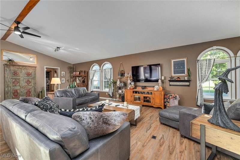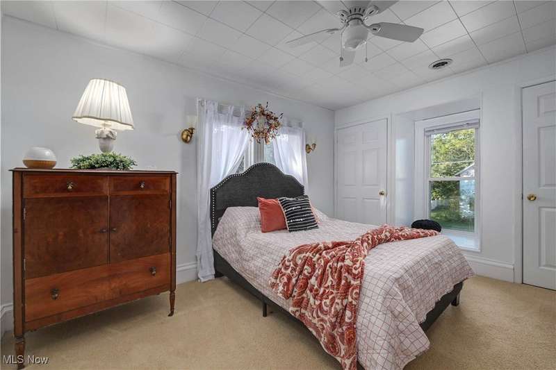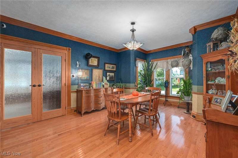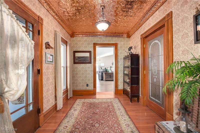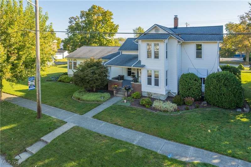 Must see property! Don't miss this supersized unique farmhouse showcasing both modern and classic features in the heart of New London. This beautifully preserved and lovingly updated home offers nearly 2,500 sq ft of elegant living space on a rare 1/2+ acre lot. With 3-bedrooms and 2-bathrooms the residence seamlessly blends timeless craftsmanship with everyday comfort. Step into the grand foyer featuring a striking copper ceiling, setting the tone for the rich character found throughout. Gleaming hardwood floors and ornate red oak trim flow through the spacious layout. The newer addition of the home features a stunning vaulted great room with soaring ceilings, LVL flooring (2020) and an abundance of natural light, creating an open-concept floor plan ideal for both everyday living and entertaining. The large study is adorned in ornate custom trim and accessed through beautiful French doors. Moving upstairs a sizeable primary bedroom with his and her closets, 2 additional bedrooms and an updated full bath (2025). Outside the expansive lot offers room to garden, play, or simply relax under the shade of covered front porch. Additional features include a detached garage, parking area and dog run. All just steps from downtown shops, and community events. A rare find with historic elegance, modern livability, and prime location, this home is a must-see. Additional Updates include Roof (approx. 2017), Newer Windows, Full home interior paint (2020), Basement stairwell (2024)