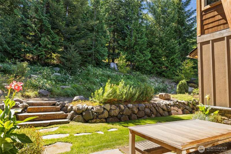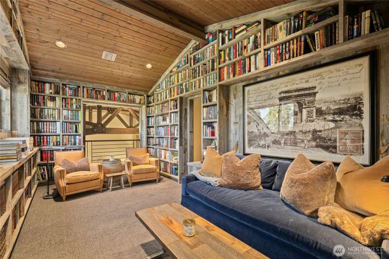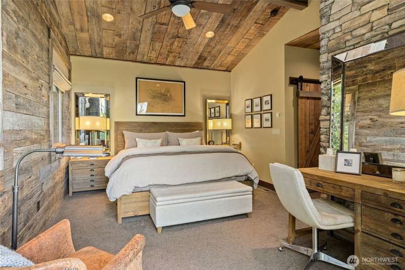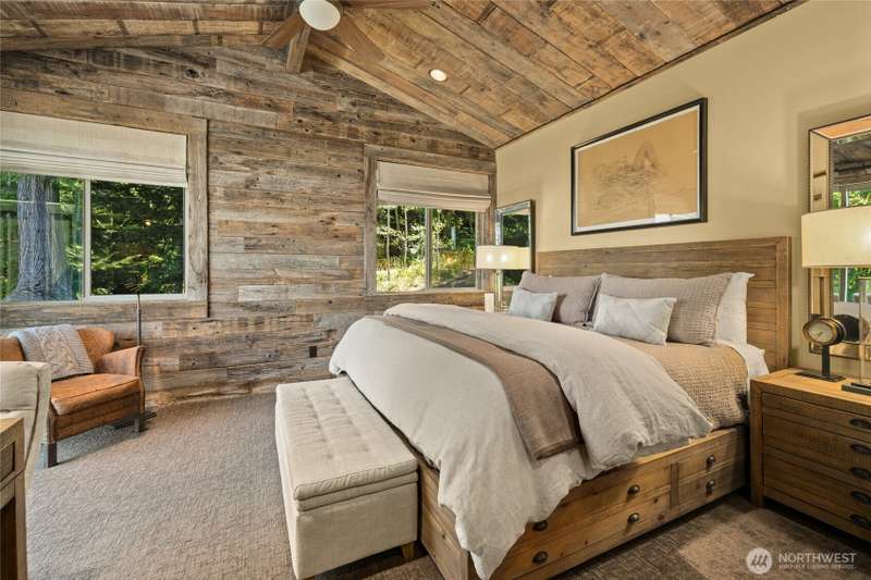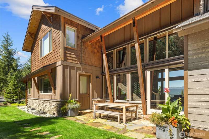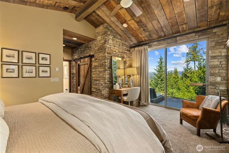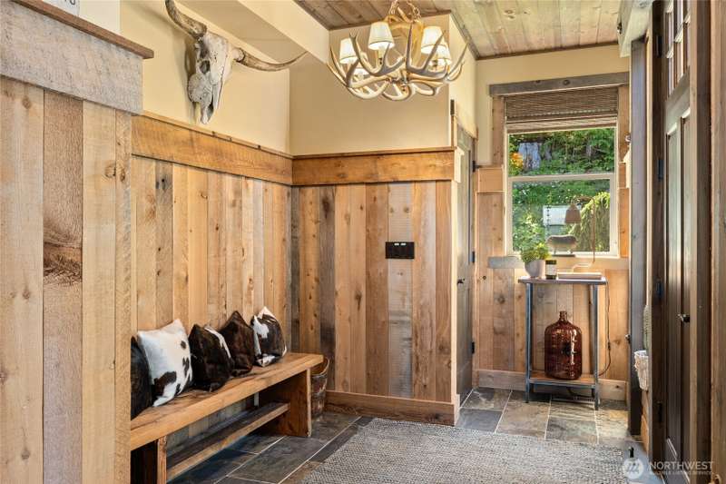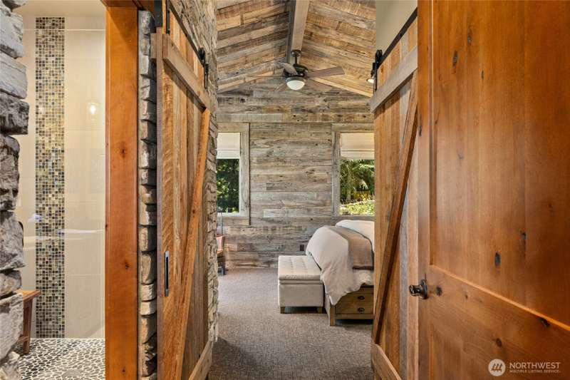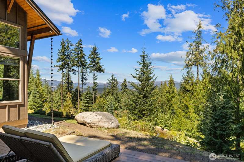 Exceptional Trailside home showcases stunning Stewart Mountain views and radiates rustic, old-world charm. Extensively upgraded, it boasts custom barnwood & stone finishes, a striking built-in wine rack, and vaulted ceilings with exposed beams & reclaimed wood planking. The library/guest room features custom built-in shelving, while a separate bunk room offers the perfect retreat for guests. Professionally designed landscaping highlights a private pond with circulating stream, full irrigation, and a cozy fire pit area. A garage car lift adds extra parking. Custom window treatments and countless details enhance this remarkable home. Gated community with access to Evergreen Snow Park offers snowmobiling in winter, ATV & hiking in summer.