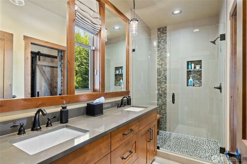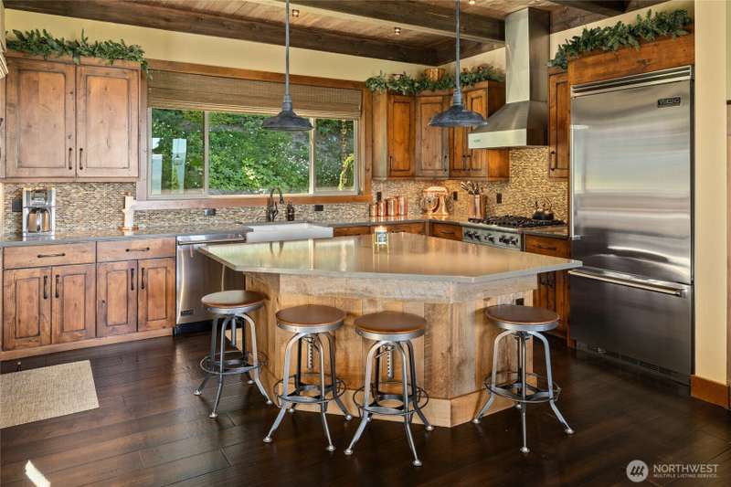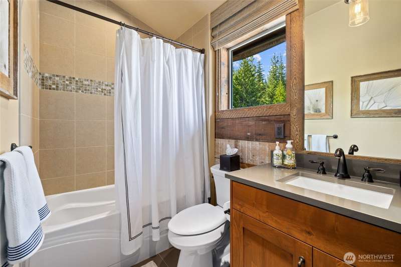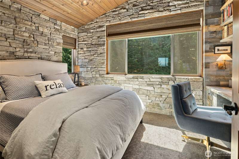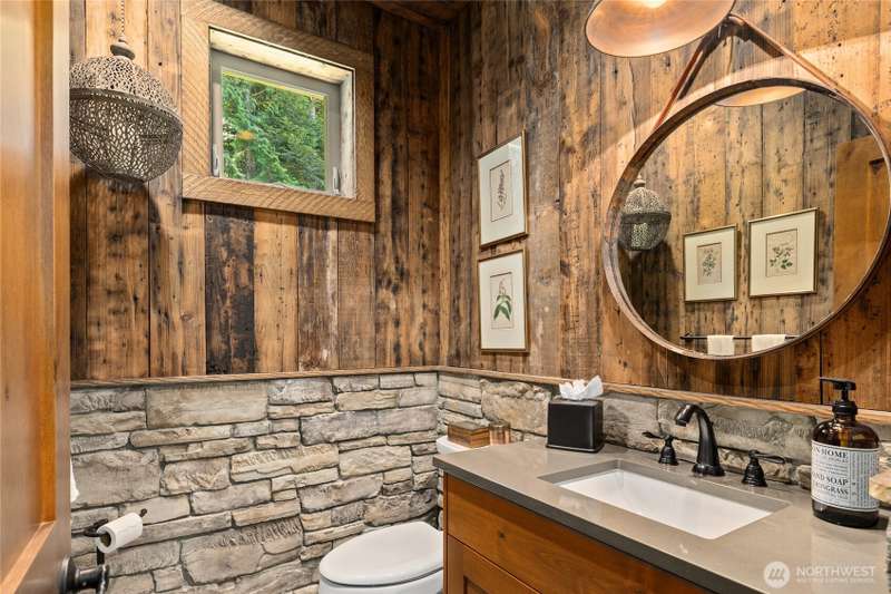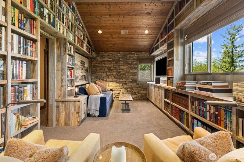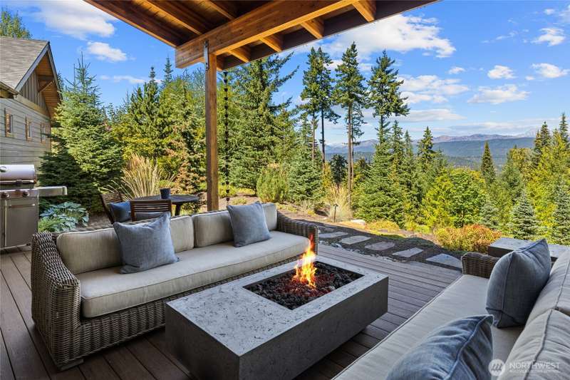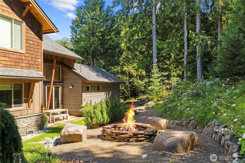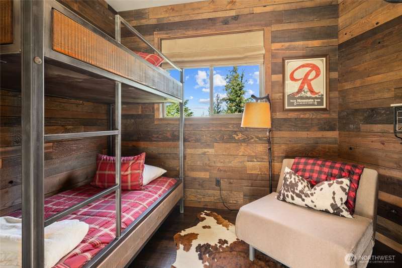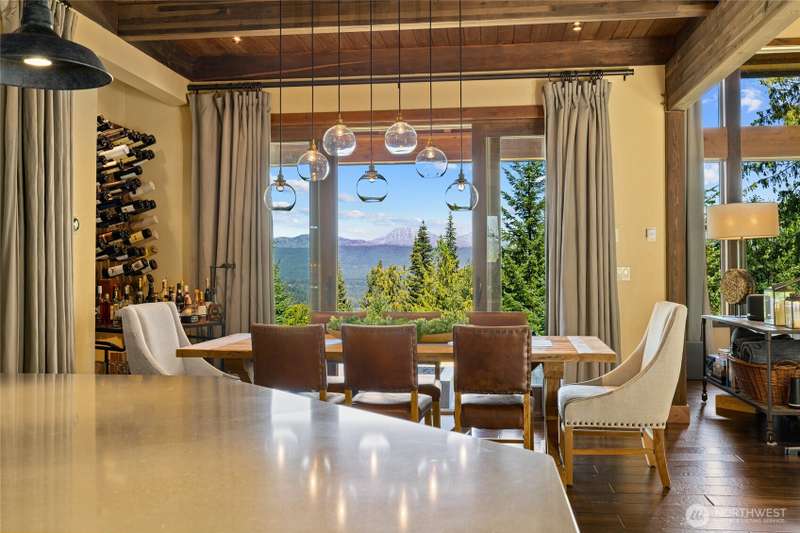 Exceptional Trailside home showcases stunning Stewart Mountain views and radiates rustic, old-world charm. Extensively upgraded, it boasts custom barnwood & stone finishes, a striking built-in wine rack, and vaulted ceilings with exposed beams & reclaimed wood planking. The library/guest room features custom built-in shelving, while a separate bunk room offers the perfect retreat for guests. Professionally designed landscaping highlights a private pond with circulating stream, full irrigation, and a cozy fire pit area. A garage car lift adds extra parking. Custom window treatments and countless details enhance this remarkable home. Gated community with access to Evergreen Snow Park offers snowmobiling in winter, ATV & hiking in summer.