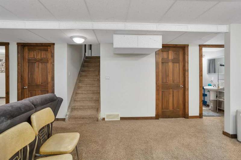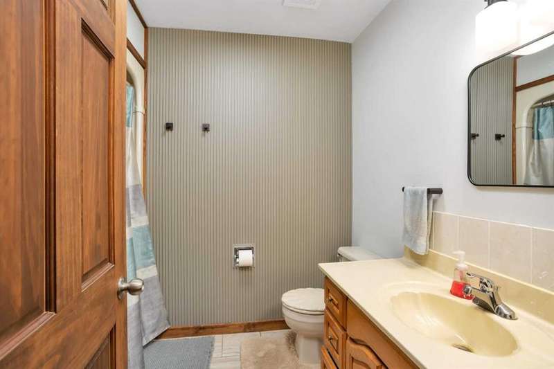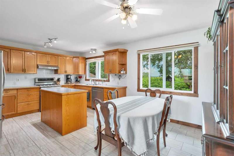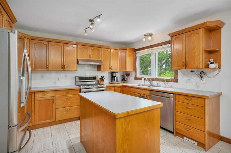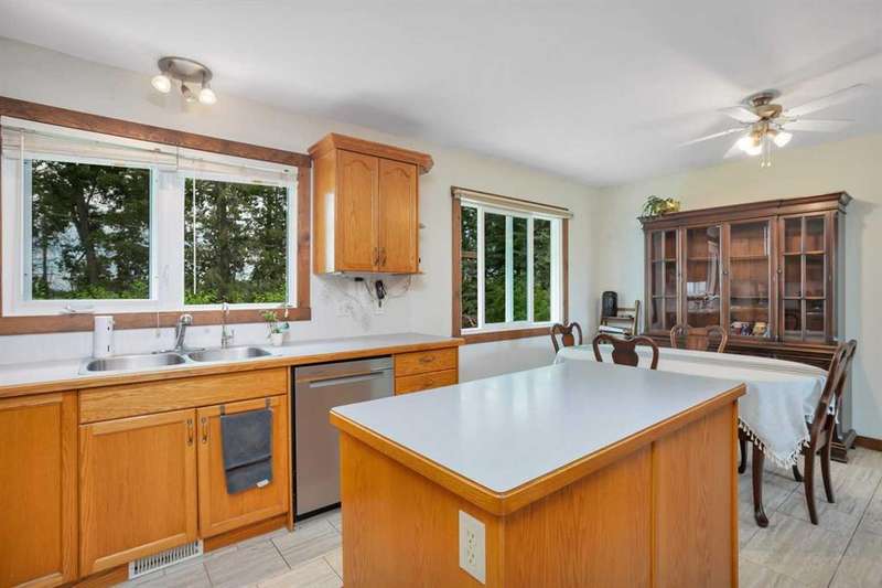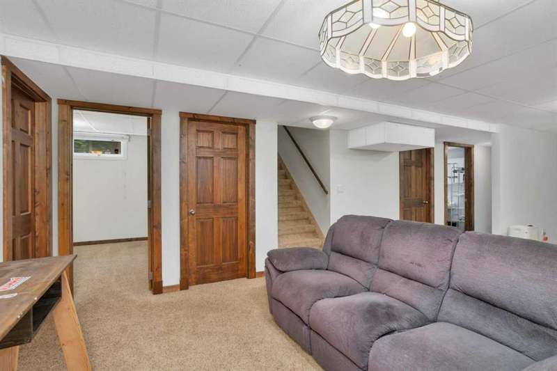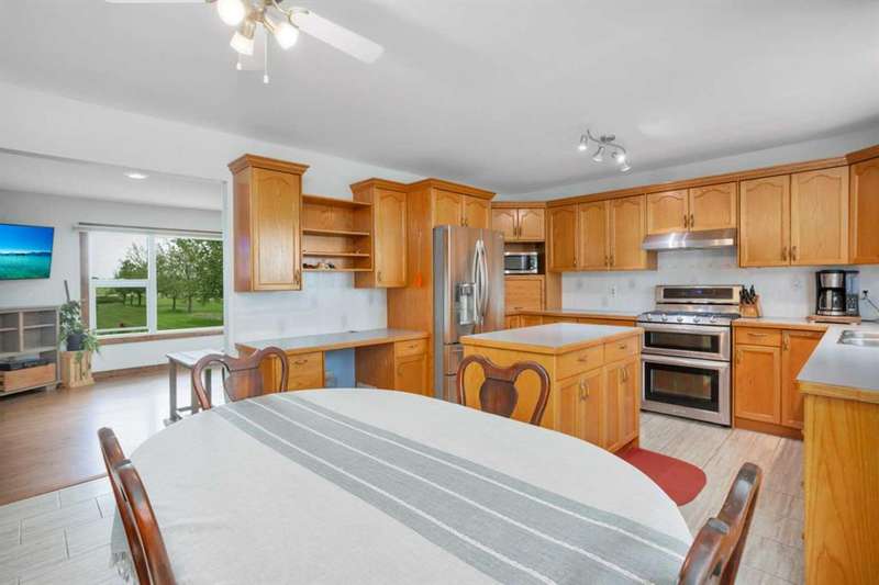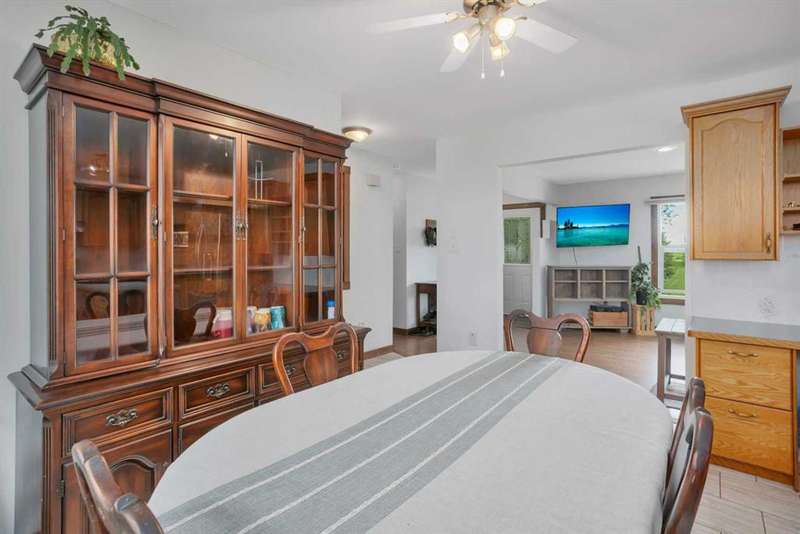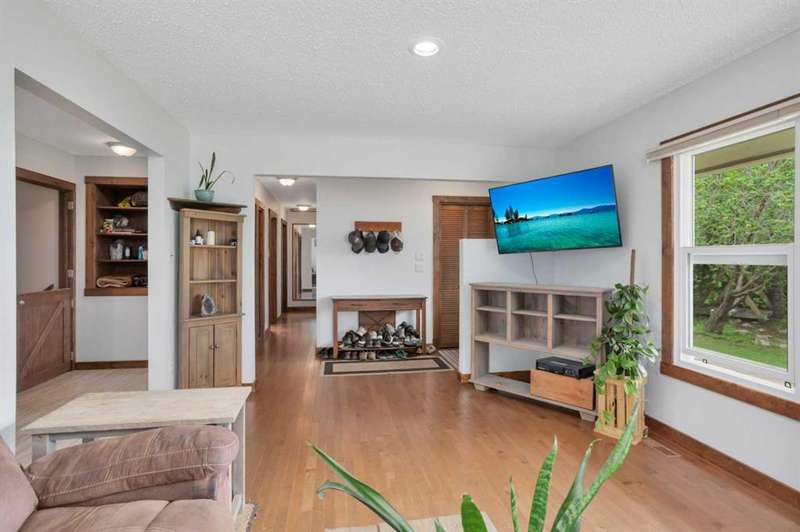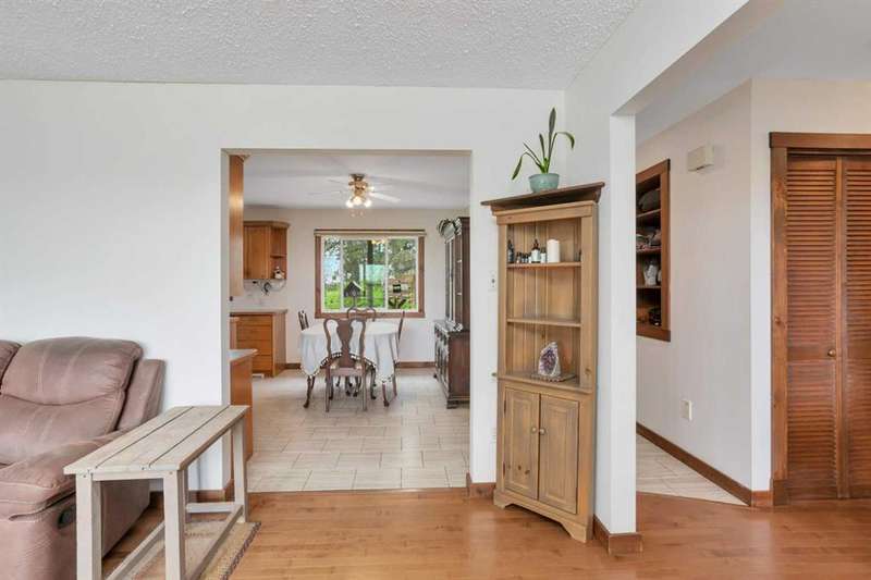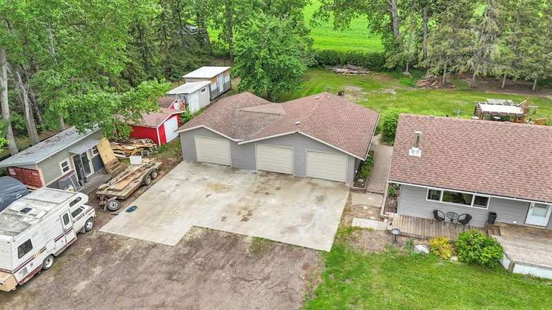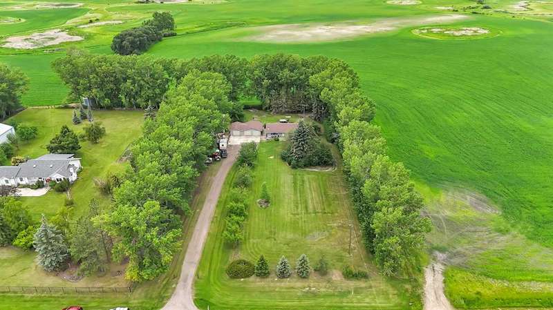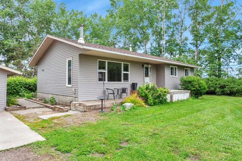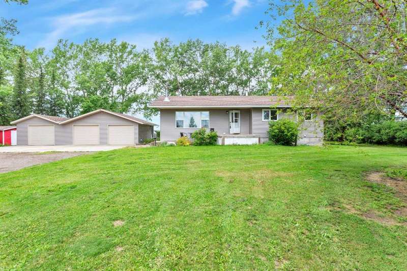 Welcome to this beautiful 1.94-acre acreage just 4 mins from Innisfail and on paved roads then entire making the location of this property very hard to beat. You will drive in on a long driveway and through a beautifully treed and landscaped front yard all the way to the property. This bungalow is 1288 square feet with a beautiful open floor plan in the main area with an open and prefect flowing kitchen and dining area as well as a spacious living room. The home consists of 4 bedrooms with 3 up and 1 down as well and 2 full bathrooms and a half bath too. The living room has a cozy wood stove perfect for cool lazy nights. The basement of the home has the perfect open layout, great for kids being kids or entertaining company. The 3-car heated garage is another unreal perk to this property and allows you a workspace and a parking place all under the same roof. Now the property itself, the private backyard and beautiful deck are absolutely stunning on these summer nights. The yard consists of many fruit trees such as apple, pear, apricot and cherry, along with raspberry and Saskatoon bushes all on the property. The back yard also will have extra storage sheds staying on the property to give you even more room to put everything. Acreage living only 4 minutes from town on all paved roads on 1.94 acres of usable beautiful land with farmland behind it and a beautiful bungalow with 3 car garage to top it off. This home will check a lot of boxes.