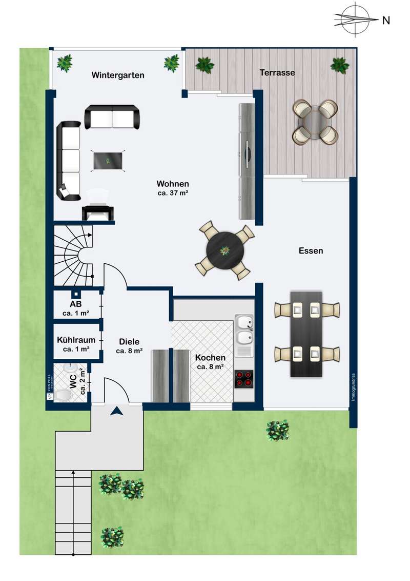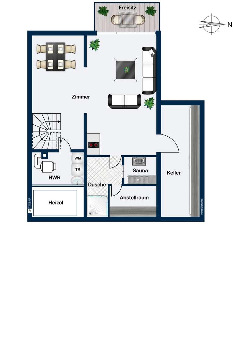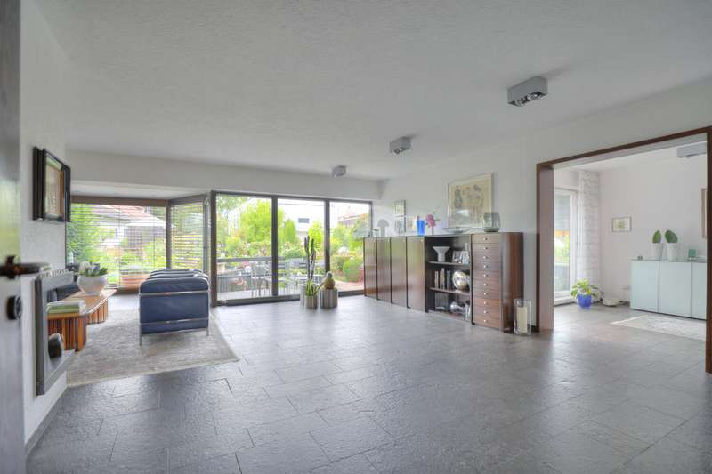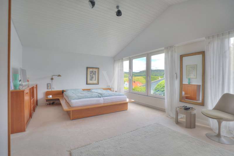 Quiet family home with granny annexe, sauna and garden oasis This charming detached house was built in 1984 on a plot of approx. 335 m² and is located in the popular town of Flein - just a stone's throw from the vineyards. With approx. 192 m² of living space on three levels, the well-kept property offers generous space for the whole family thanks to its well thought-out layout. A lovingly landscaped garden with a sunny west-facing aspect, a versatile granny annex with sauna and a single garage are among the special highlights of this property. On the first floor, you are greeted by a spacious hallway that creates plenty of room to arrive. Here you will also find a classic guest WC as well as a practical cold room and a storage room. The approx. 37 m², light-flooded living area impresses with large window fronts (conservatory) and a cozy fireplace, which creates a cozy atmosphere on cold days. From here you can enjoy the view of the beautifully landscaped garden. The open, high-quality kitchen with brand-name appliances is timelessly modern and offers plenty of storage space - perfect for treating family and friends to culinary delights. Directly adjacent is the dining area, from which you can reach the terrace with electric awning. This extends the living space outdoors in the summer months and creates a wonderful place to end the evening with a glass of wine in the warm evening sun. A spacious daylight bathroom with bathtub, shower, WC, bidet and double washbasin awaits you on the upper floor. The approx. 27 m² bedroom not only offers peace and relaxation, but also space for a dressing room and a wonderful view of the neighboring vineyards. Opposite is currently an approx. 25 m² study with access to the loggia. This area can easily be converted into two bright children's rooms if required, making it ideal for a family of four. The basement offers further special features: In addition to the heating and utility room, a storage room and a cellar measuring approx. 19 m², there is a granny annexe area of around 34 m² with direct access to the garden. Equipped with a sauna and walk-in shower, this room offers a wide range of uses - whether as a private wellness oasis, a separate area for teenagers/au pair or a quiet workspace. A single garage just a few steps away rounds off this attractive offer. Look forward to a well-kept, high-quality home in a quiet location, with a friendly neighborhood and the incomparable charm of the surrounding vineyards of Flein.