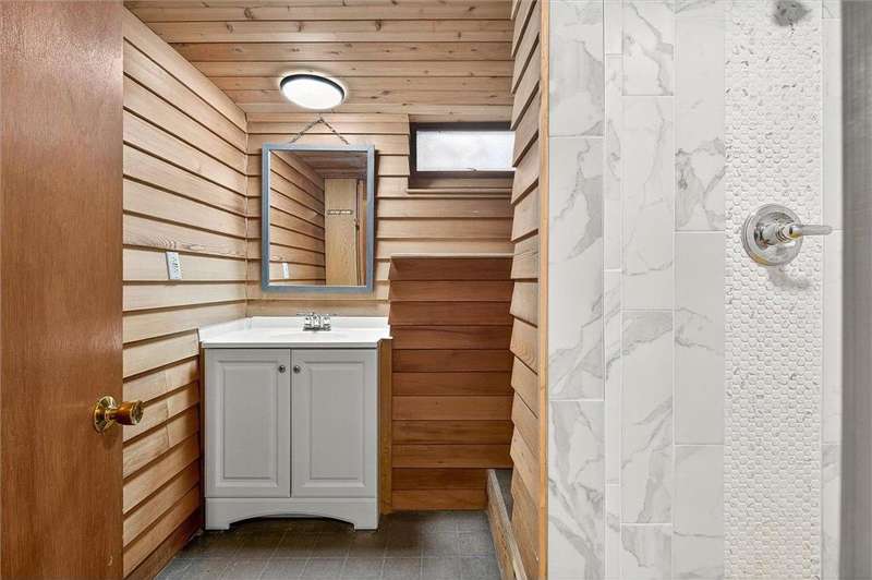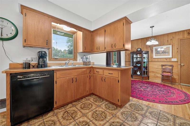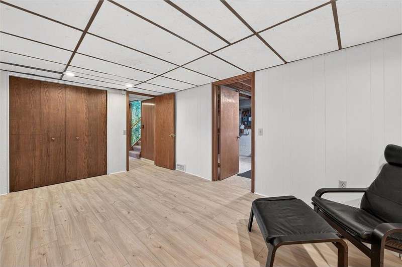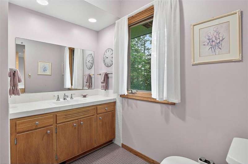 Classic 1962 Mid-Century Modern home with stunning views of Crystal Lake! Situated on a spacious 0.44-acre lot, this well-maintained home features original oak floors on the main level and preserved vintage kitchen cabinets. The kitchen opens to the informal dining area and overlooks the large backyard-perfect for entertaining. Two wood-burning fireplaces with brick surrounds anchor the living and lower-level family rooms. Updated main-level full bath includes a soaking tub and subway-tiled shower. Lower-level 3/4 bath offers cedar shake walls and a newly tiled shower. Three bedrooms on the main level, plus potential for a 4th bedroom or office downstairs. Generous storage throughout, including a walk-in closet, large workshop/craft room, and an oversized 2-car attached garage. A rare opportunity to own a character-filled home with lake views!