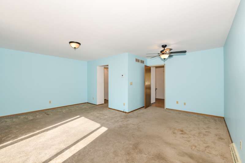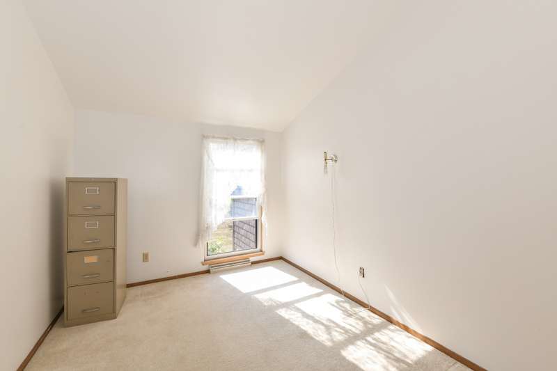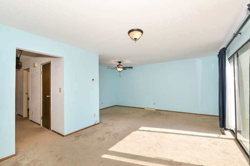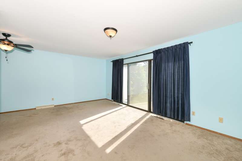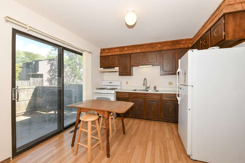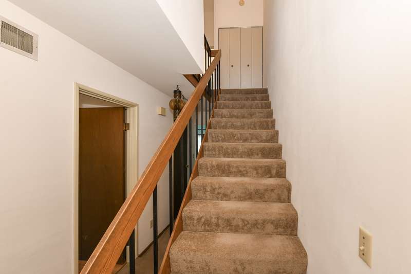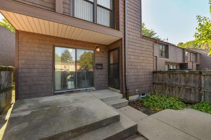 3 bedroom condo in wooded location with private entry and 1.5 baths, cleaned and cleared out, ready for it's next owner! Kitchen with appliances included, pantry, and patio doors. Living rooms with patio doors to large green space behind the unit. 3 bedrooms and full bath upstairs. Primary features vaulted ceiling and big closet. Full basement with washer/dryer included, rec room with bar, and central air. Enclosed concrete front patio, vinyl windows, and newer blacktop parking space. Affordable with a lot to offer, call today!