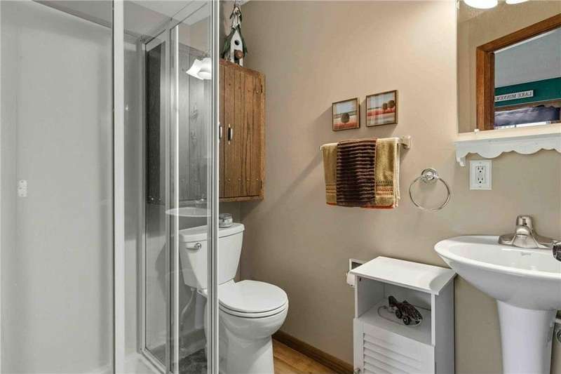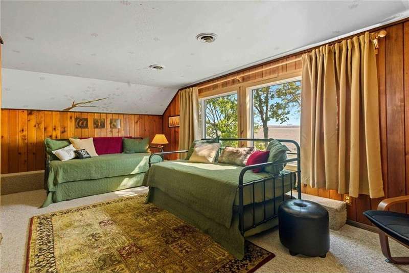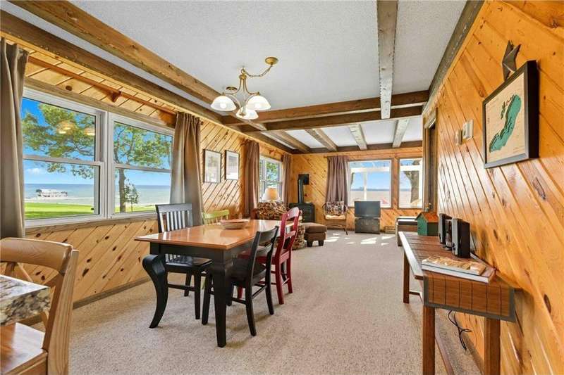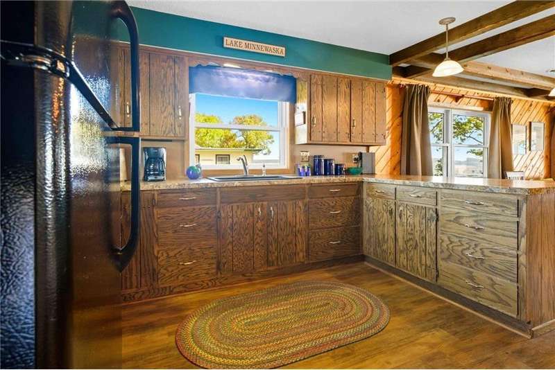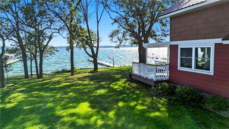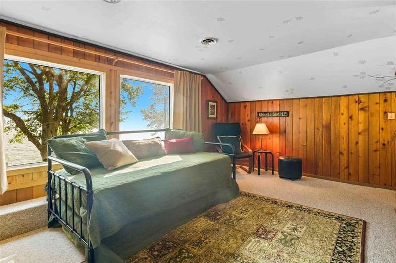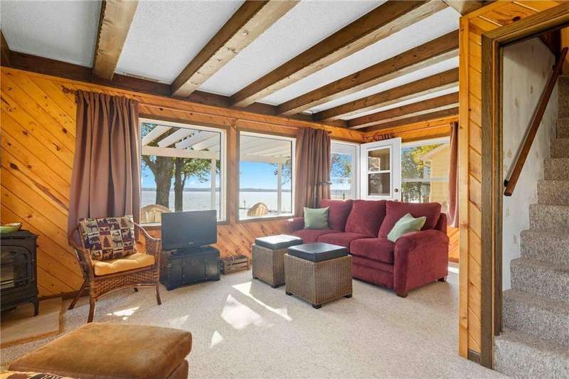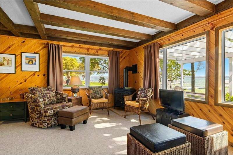 Charming Lakefront cabin with 74 feet of level shoreline on desirable Lake Minnewaska! Your perfect lake escape with breathtaking views! This property is truly a GEM and embodies the timeless charm of up-north cabin living. Inside, the cabin exudes rustic charm with warm wood paneling, exposed ceiling beams, and a comfortable open concept living area. The large windows in the lakeside living room flood the space with natural light and provide stunning South-facing views of the lake. Step right out onto your expansive lakeside deck & pergola…great place to enjoy your morning coffee or relax in the evening. The kitchen features updated countertops & ample cabinet space. The dining area connects the kitchen and great room, creating an inviting space with lake views and a breakfast counter for additional seating. Main floor primary bedroom and over-sized upper level bedroom that fits two trundle beds. Many improvements include windows, LP siding, metal roof, composite decking, furnace, heat pump, flooring, bath, and much more. Lot extends beyond private road to make this 0.39 acres. Located just a short drive from many local amenities including lakeside restaurants, golf courses, & winery, this property combines the tranquility of lakeside relaxation with convenient access. Opportunities like this don’t come along often—your lake getaway awaits.