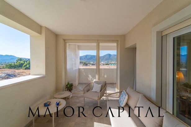 One of the apartment's strong points is its large covered verandas, which surround the house on three sides and offer perfect spaces for outdoor dining or for creating an additional outdoor living area that greatly enhances the quality of life and allows you to fully enjoy the Mediterranean climate.