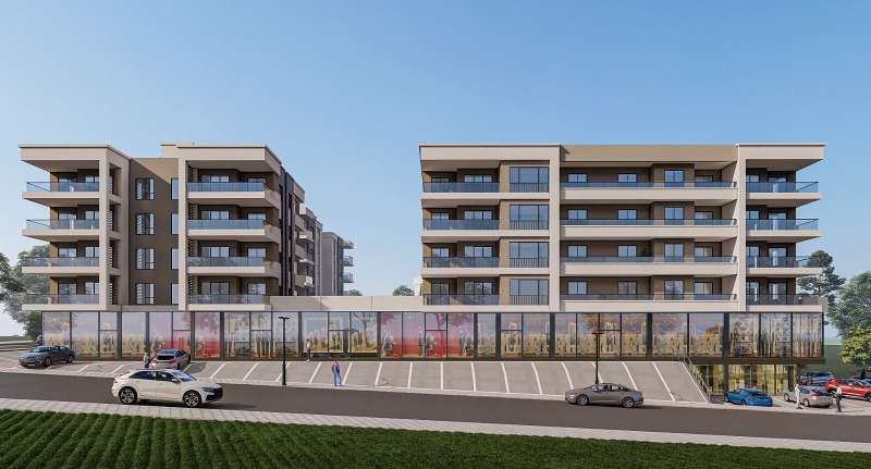 The complex with horizontal architecture is oriented east-west and offers sea views from each block in the middle part. The 4-block complex has 76 flats with 1,2 or 3 bedrooms.