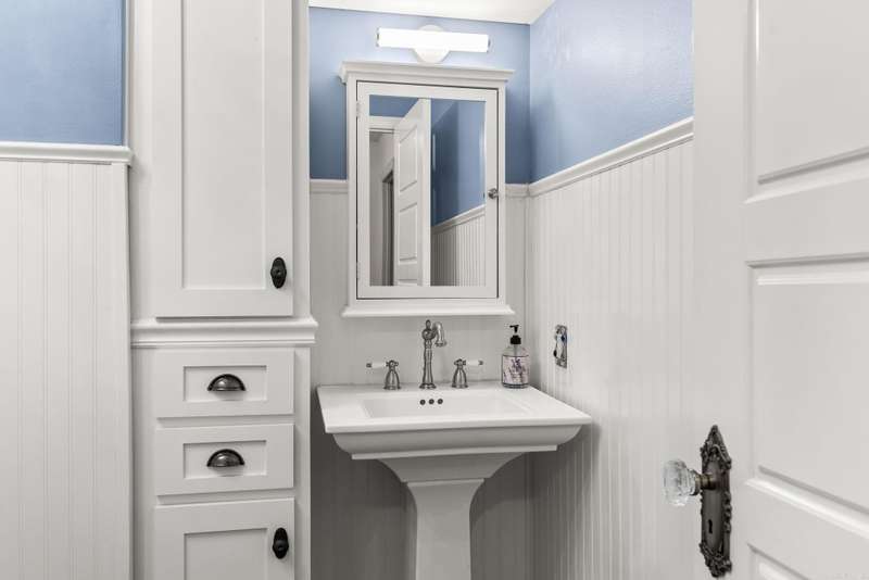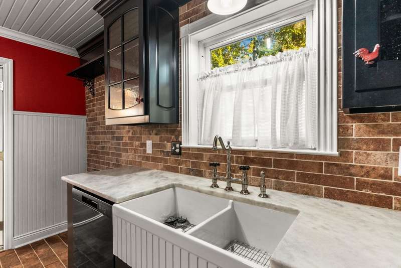 This is a wonderful home! So many updates and so well taken care of! This three bedroom home has a fantastic primary suite with a large walk in closet, a remodeled bathroom with pretty shower and a sitting area (or office or nursery) with bookshelves. Two other bedrooms share the updated hall bath with clawfoot tub. The kitchen was remodeled in 2020 with quartzite countertops, farm sink, breakfast bar, and custom cabinetry and brick floors. Off the kitchen is a three season room with windows with screens. This space does not count in square footage but is a lovely addition to the home. A door from the sunroom leads you to the new tiered deck (2025). There is a formal dining room off the kitchen. Downstairs you will find a family room with fireplace (ventless gas logs) a laundry area and half bath. New HVAC in 2024 with ten year extended warranty if service contract continues. New roof, including new decking, in 2022. New water line from home to the street in 2023. Too many updates to list them all! This wonderful home is a must see!