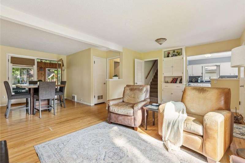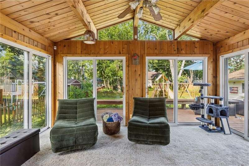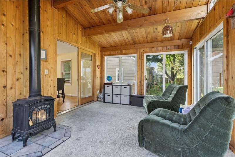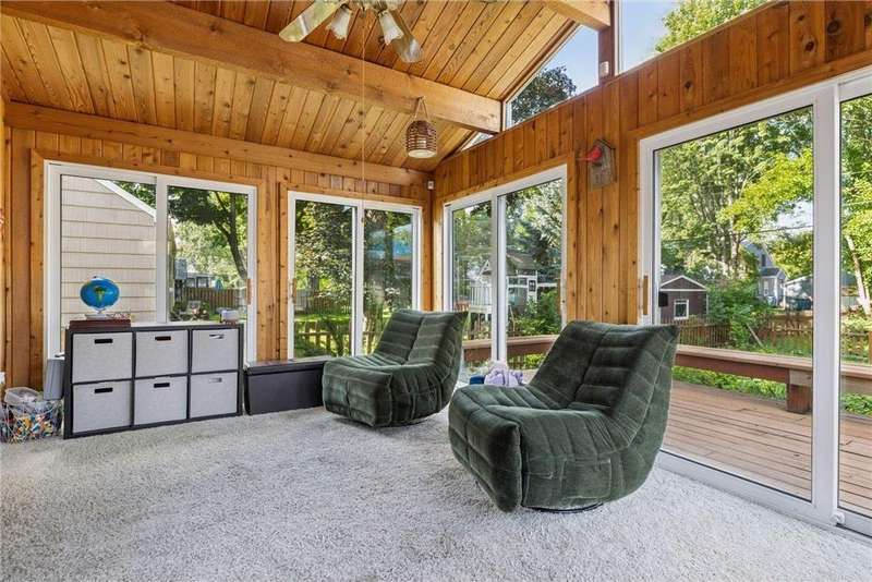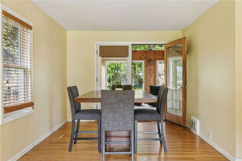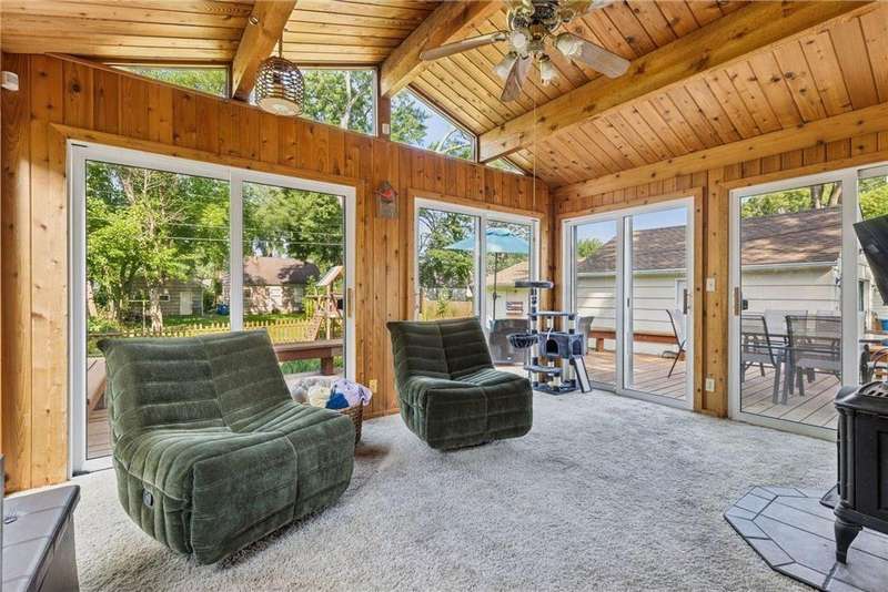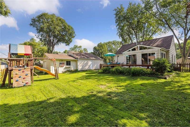 Charming cottage-style home in Richfield, conveniently located near shopping and parks. This delightful residence is filled with character throughout, featuring beautiful hardwood floors on the main level. It offers a spacious primary bedroom and a large dining room that opens to a heated three-season porch with a gas stove, perfect for relaxing or entertaining. The upper level boasts a sizable bedroom with excellent headroom for a story and a half. The lower level includes a freshly carpeted living room and a generous third bedroom. Additionally, there's a handy workshop built into the back of the garage, ideal for projects and hobbies. The expansive flat yard and deck provides an ideal space for outdoor entertaining, activities and play. This home combines charm, comfort, and functional living spaces in a desirable location.