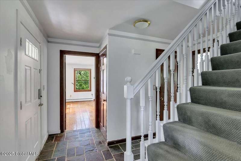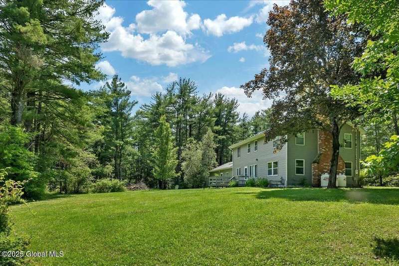 Serene Colonial Retreat on 5.79 Wooded Acres with Private PondNestled off a quiet secondary road, this low-maintenance Colonial-style home offers 2,860 sq. ft. of peaceful living surrounded by woods on all sides. Enjoy the beauty of nature and ultimate privacy on 5.79 acres featuring a landscaped yard, a pond stocked with largemouth bass, and ample space for expansion?perfect for an inground pool or garden oasis.Inside, the home boasts a spacious layout with a fireplaced living room, formal dining room, dine-in kitchen, and a rear deck ideal for al fresco meals. The second floor includes a private en-suite primary bedroom on one end and three additional bedrooms plus a full bath on the other?easily convertible to five bedrooms if needed.A large bonus room connects the attached one-car garage to the main house, complemented by a separate storage shed for added convenience. The full basement includes a brick fireplace, laundry area, generous storage, and workspace.Recent upgrades include propane heating, on-demand hot water, enhanced insulation, and garage storage. Located just minutes from the Taconic Parkway and close to shopping and dining, this tranquil property blends rural charm with modern comfort.