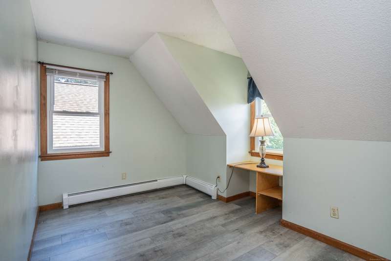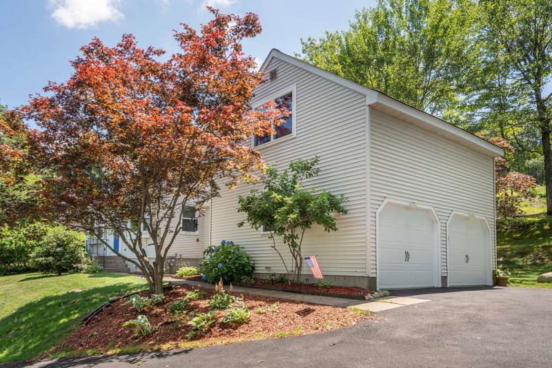Charming Cape-Style Home with Spectacular Views. This beautifully maintained Cape-style home offers comfort, modern updates, and captivating scenery. Key features include a new gas boiler, new windows, a 9-year-old roof, vinyl siding, and a newly paved driveway-all enhancing its efficiency and curb appeal. Step through the attached 2-car garage into a spacious entryway or mudroom, with direct access to the private backyard-perfect for busy lifestyles. Inside, the updated kitchen boasts granite countertops and a gas stove, ideal for any home chef. The formal dining room features hardwood floors and a large window showcasing incredible exterior views. Relax in the cozy living room with its stone fireplace featuring a gas log insert, accompanied by another picture window framing spectacular scenery. Upstairs, you'll find three generously sized bedrooms, all fully dormered for increased ceiling height and comfort. The remodeled full bathroom offers a tub/shower combination with stylish fin