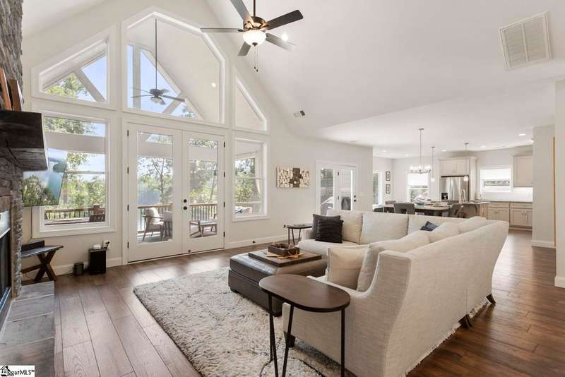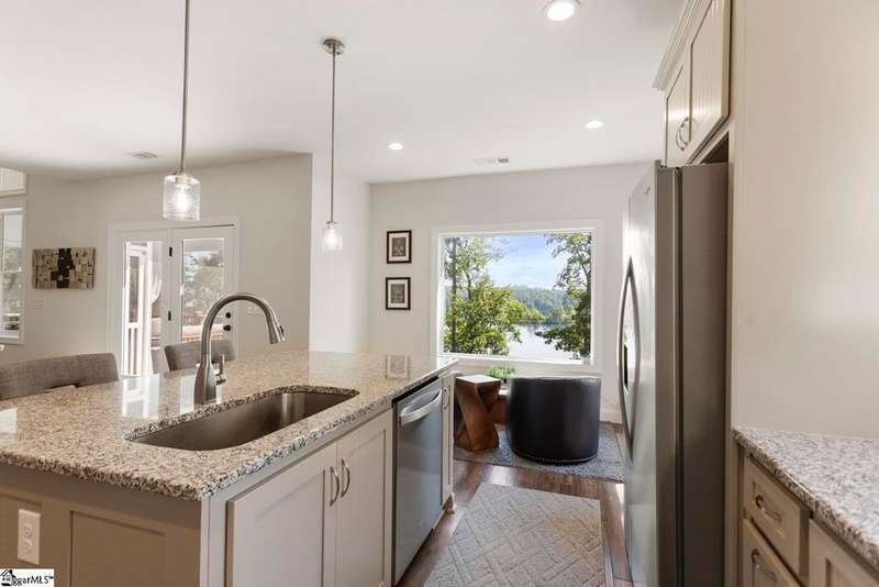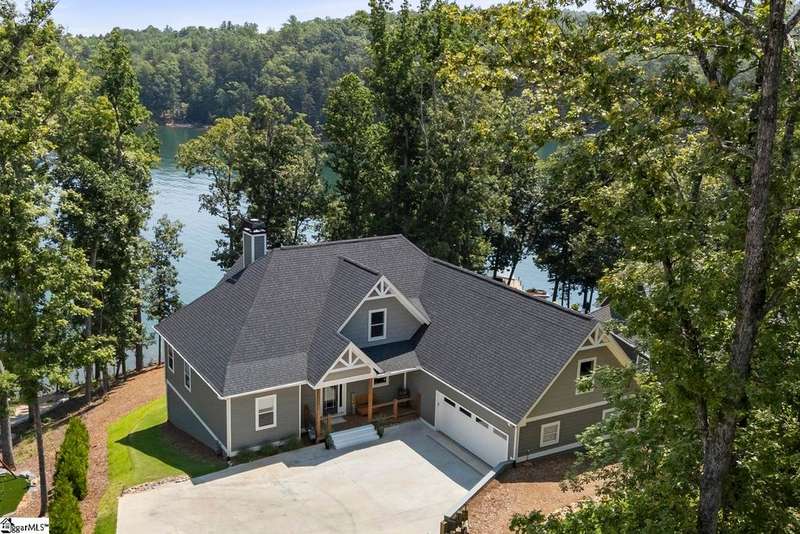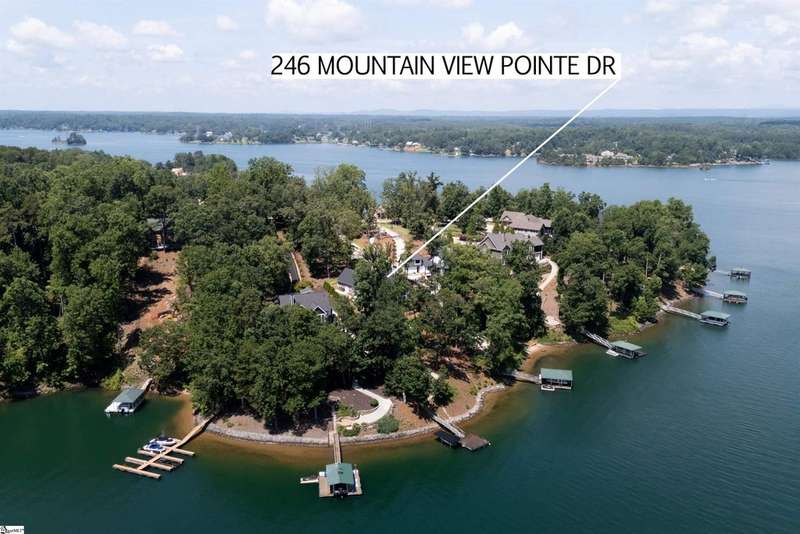 246 Mountain View Pt: If you've been looking and hoping for a newer home with deep water, great lake and mountain views, close to lakefront dining and town, and under $2 million, well, you might have just found it! This home was completed in 2022 and features an open main level floor plan and a walkout lower level with great living and storage space. Upon entry, you're greeted by natural light and blue Lake Keowee water views. The open floor plan is great for entertaining as well as everyday living. The living room has a stone fireplace with gas logs and opens up to the covered and screened porch. The kitchen features a gas range/oven, built-in stainless appliances, and a prep island with sink. You can dine with incredible lake and mountain views in the breakfast area, informal dining space between the kitchen and living room, or on your screened porch--whatever you prefer or whatever best suits the season. The owner's suite is privately located on the left side of the main level and has a large picture window to frame the lake view. There are two clothes closets, a water closet, and a walk-in shower to round out the owner's suite. A desirable second bedroom and full bath are located on the right side of the main level, so you can have guests who prefer not to navigate stairs visit. The mud/laundry room is ample in size and leads to your two-car garage that is deep enough for a full-size truck. The lower level provides a 3rd bedroom and 3rd full bath, great recreation space, a heated/cooled storage/mechanical space, another storage mechanical space, and an area with access to the outside that is perfect to store your lake toys, golf cart, and more. The current owners use the rec space as a home gym, but it could be a perfect second living room, game room, or whatever suits your lifestyle best. The unfinished space totals approximately 839 square feet, so there's room to finish the space into a bedroom/bunk room, and the existing septic system is designed for 4 bedrooms, so you wouldn't need to make any modifications there. The concrete path to the dock is easy to walk or ride, and there's a larger turnaround at the bottom...also a perfect place to watch the sunset over the Blue Ridge Mountains. This property previously permitted for a 26X30 Covered dock with 50' walkway (and likely will again), but the current owners preferred an oversized swim platform with a Sunstream SLX6500 covered lift that will convey with the property--if you'd prefer to replace the dock with a covered dock, the seller will accept a contingency to obtain that permit prior to closing. The water is deep and clear at the dock, and there are beaches right across the cove to paddle board, kayak, swim, or boat. Mountain View Pt is an established community with high-end homes and is located a short golf cart ride to the Lighthouse Restaurant, Cabana, Sip and Swing.