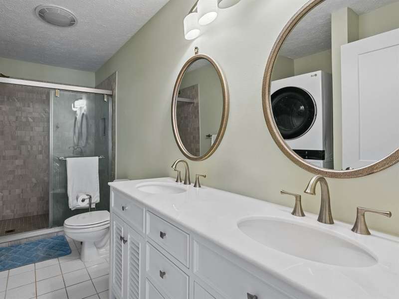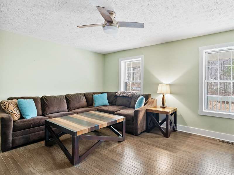 In a highly desirable area just minutes from Whole Foods, top restaurants, gyms, and coffee shops. Enjoy a covered rocking chair front porch, fenced backyard with dog door, and spacious Trex deck ideal for entertaining. Inside features quartz countertops, large island, stainless appliances, updated lighting, refinished hardwoods, and durable LifeProof flooring. Oversized bedrooms throughout, including a large primary suite with its own laundry. Two laundry areas total. Major updates: 30-year roof (2016), HVAC (2018), septic pump (2021). Two-car garage and ample storage. Take advantage of the incredible value in this area!