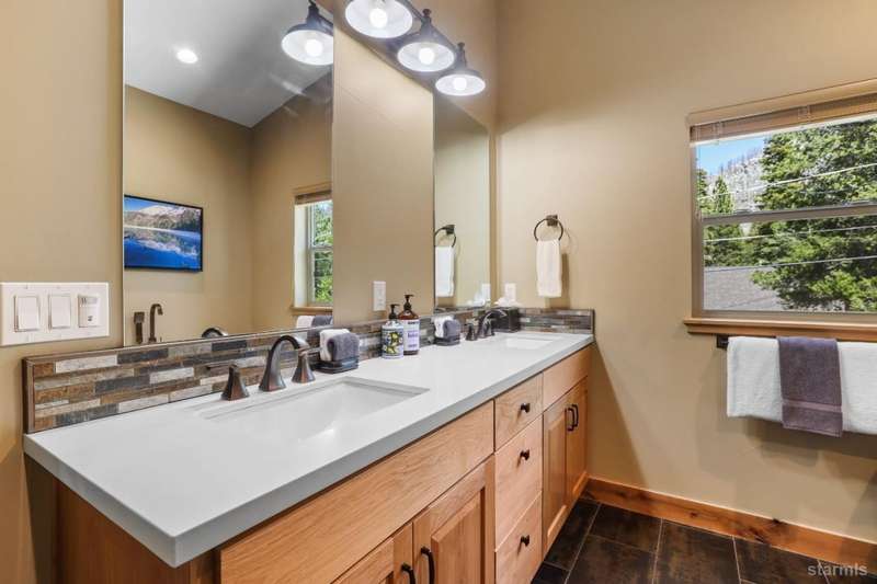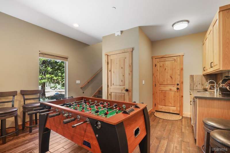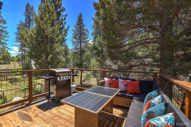 This beautiful sunny Tahoe home is located adjacent to Forest Service land and across the street from the Truckee river. This home is offered truly turn key including all the furnishings, appliances, electronics and artwork. Enjoy all the comforts for peaceful mountain living and close to all the fun. The Great room has soaring vaulted ceilings, a delightfully inviting stone fireplace and a large balcony to take in the fresh Tahoe air. The open floorplan allows for entertaining with a huge dining and bar area and a bbq deck right out the door. The finishes include Solid Birch hardwood floors, sophisticated stone and beautiful tile work throughout. The tastefully designed kitchen is equipped with quartz slab countertops, alder cabinetry and a 36 inch gas range. The primary suite features a large bedroom with sitting area complete with lots of windows and a spacious bath with a classy freestanding tub and elegant tile. Downstairs you will find 2 more bedrooms, a full bath and family/game room with wet bar and access to the 2 car garage. This home is the perfect mountain retreat and has been well maintained and comes with a hot tub. Easy access to everything Tahoe has to offer!