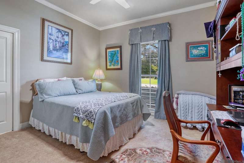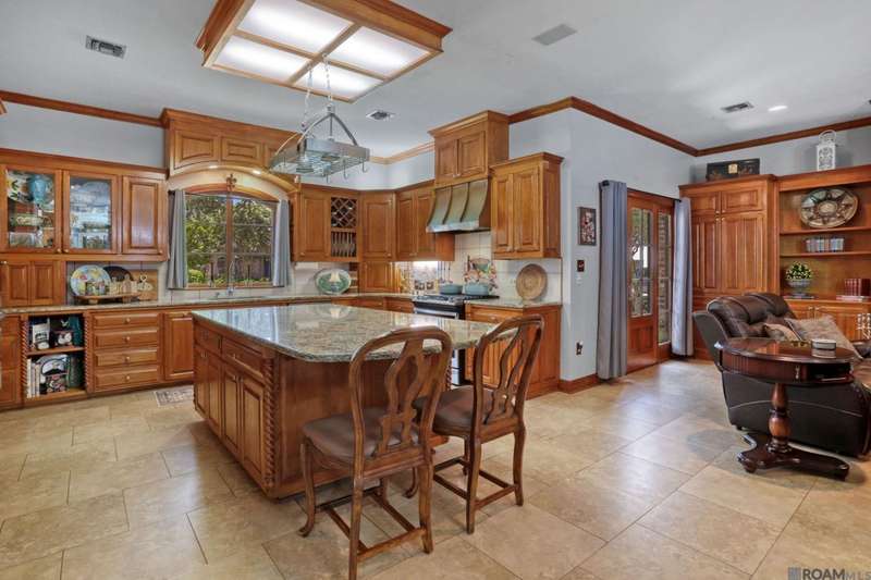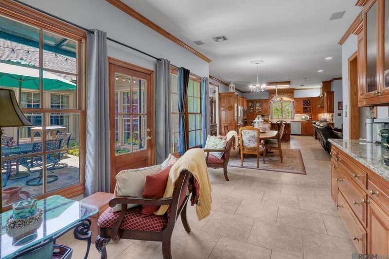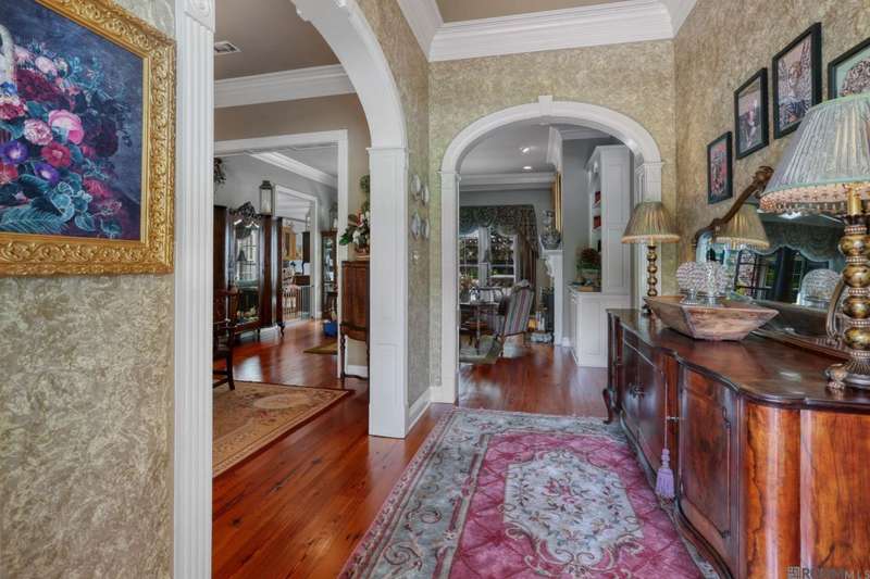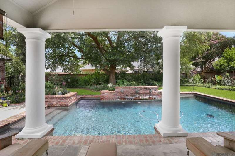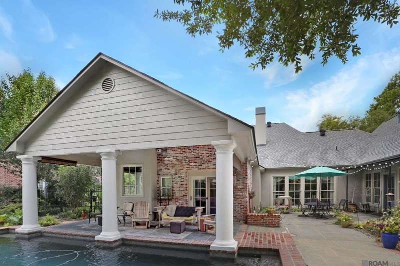 Custom-built by renowned architect Greg Roberts, this one-level residence in the city of Saint George in The Country Club of Louisiana combines timeless design with resort-style living. A circular drive and deep front porch create a stately first impression, while the Keith Russell"designed pool and landscaped courtyard provide a serene backdrop for everyday living. Inside, soaring 10-11-foot ceilings and rich wood floors set the tone. The spacious dining room is ideal for entertaining, while the inviting living room with fireplace overlooks the pool and courtyard. A true heart of the home, the expansive kitchen/keeping/breakfast area features a large island, cozy keeping room with a fireplace, and breakfast nook with tranquil pool views. The primary suite offers a private retreat with its own office/sitting area, while three additional bedrooms and baths provide comfort and flexibility for family and guests. Outdoor living shines with a 14' x 25' covered porch perfect for relaxing or entertaining. Set within Baton Rouge's premier guard-gated community, residents enjoy access to a park, playgrounds, tennis courts, soccer field, a splash pad, and dog park. This home offers the perfect blend of architectural pedigree, thoughtful design, and resort-style amenities.